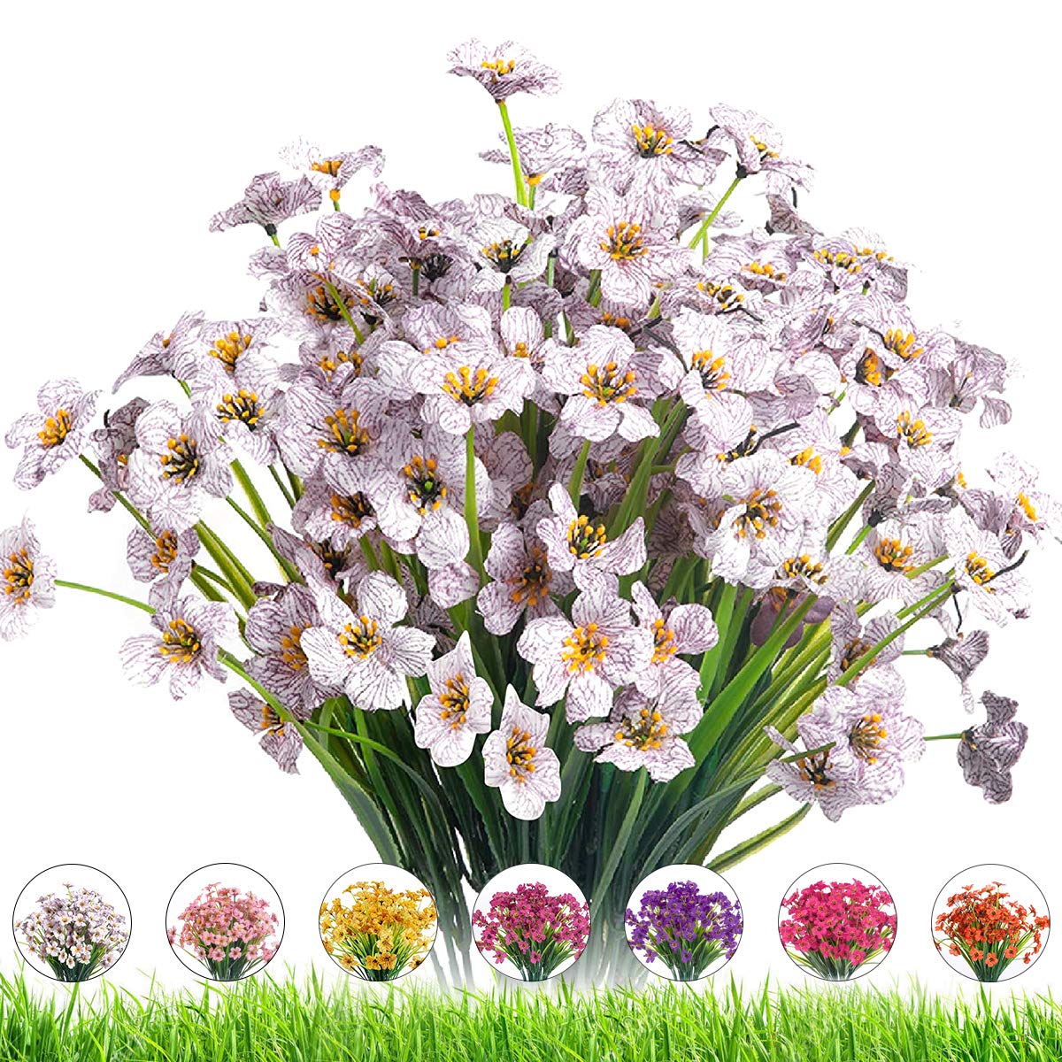 DRT DERUITAI Outdoor Artificial Fake Flowers Plants - 24 Bundles UV Resistant Artificial Violet Plastic Faux Flowers Greenery Shrubs for Outdoor|Home & Garden