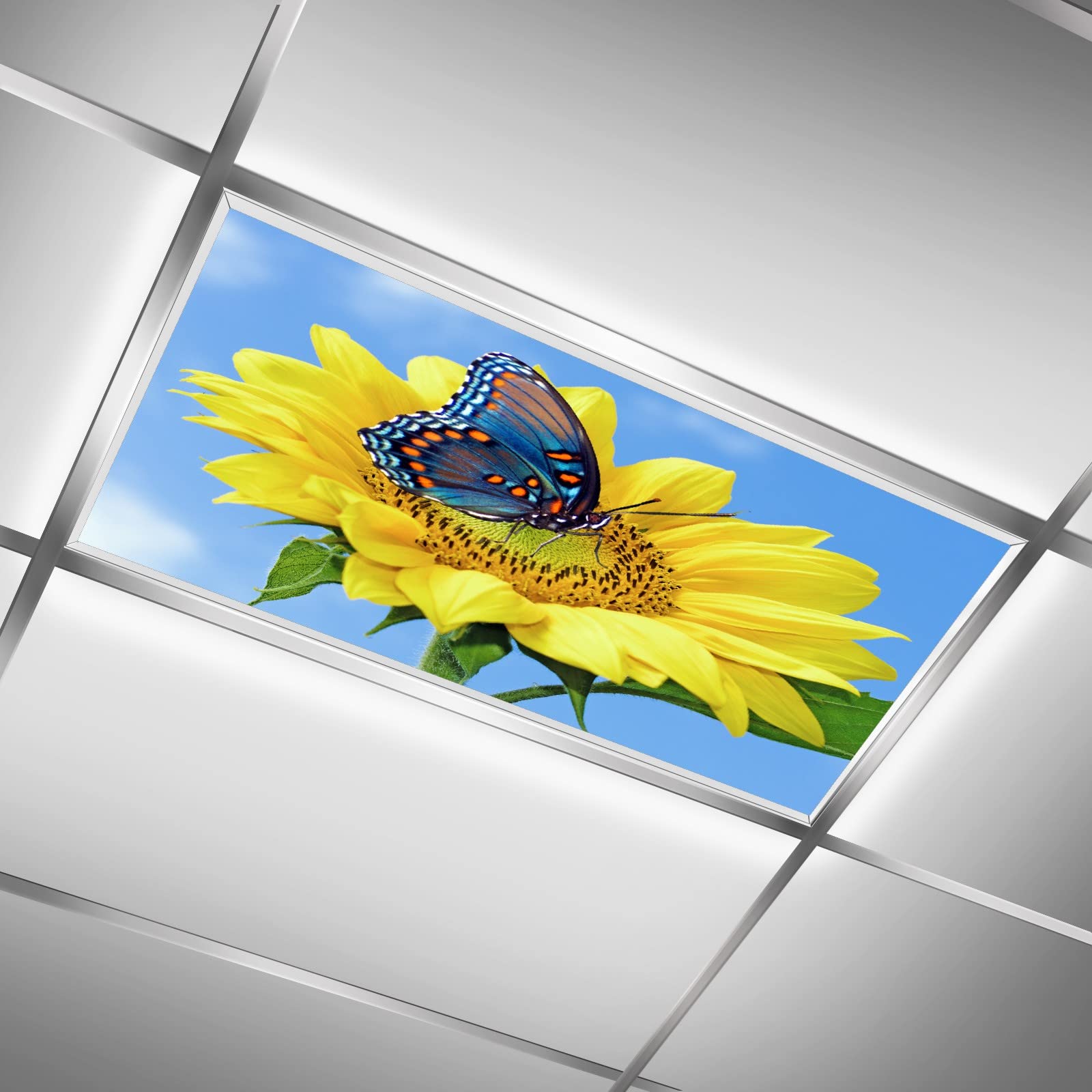 ZGONOHYE Butterfly Sunflower Ceiling Fluorescent Light Covers for Classroom Office Floral Decorative Ceiling Light Coverings Skylight Film Filter|Home & Garden