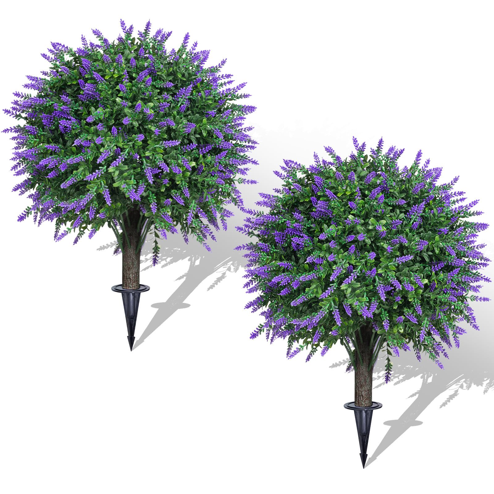 AOKIIE Set of 2 Artificial Lavender Boxwood Topiary Ball Bush for Outdoor with Ground Spike 22", UV Resistant Faux Greenery Shrubs, Fake Boxwood|Home & Garden