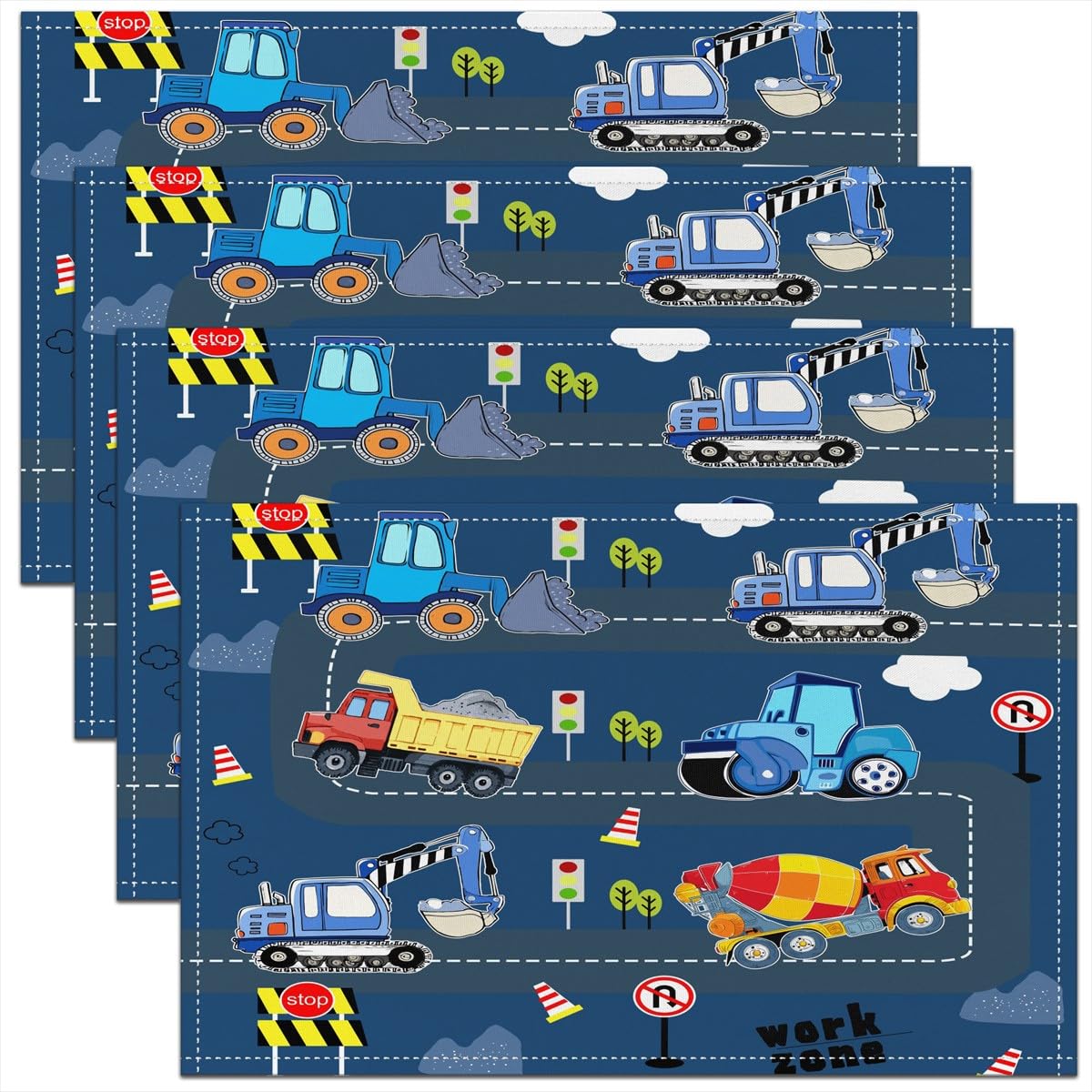 jejeloiu Excavator Placemats Set of 4 18"x12" Kids Construction Vehicles Table Place Mats for Boys Girls Teens Cartoon Car Placemat for Kitchen Dining|Kitchen & Dining