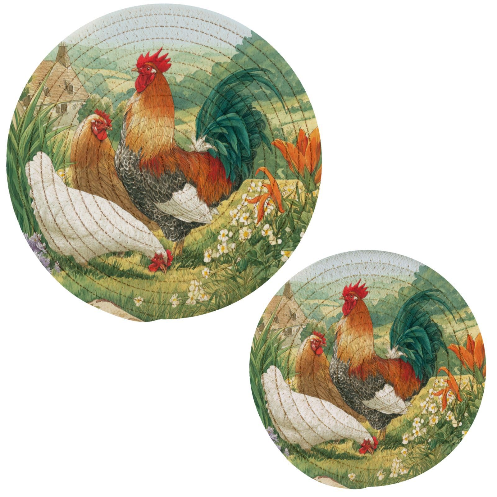 Naanle 2 Pack Chicken Rooster in Grass Round Cotton Woven Pot Holders Trivets Set, Heat Resistant Pad Mat for Kitchen Decor Cooking Supplies|Kitchen & Dining