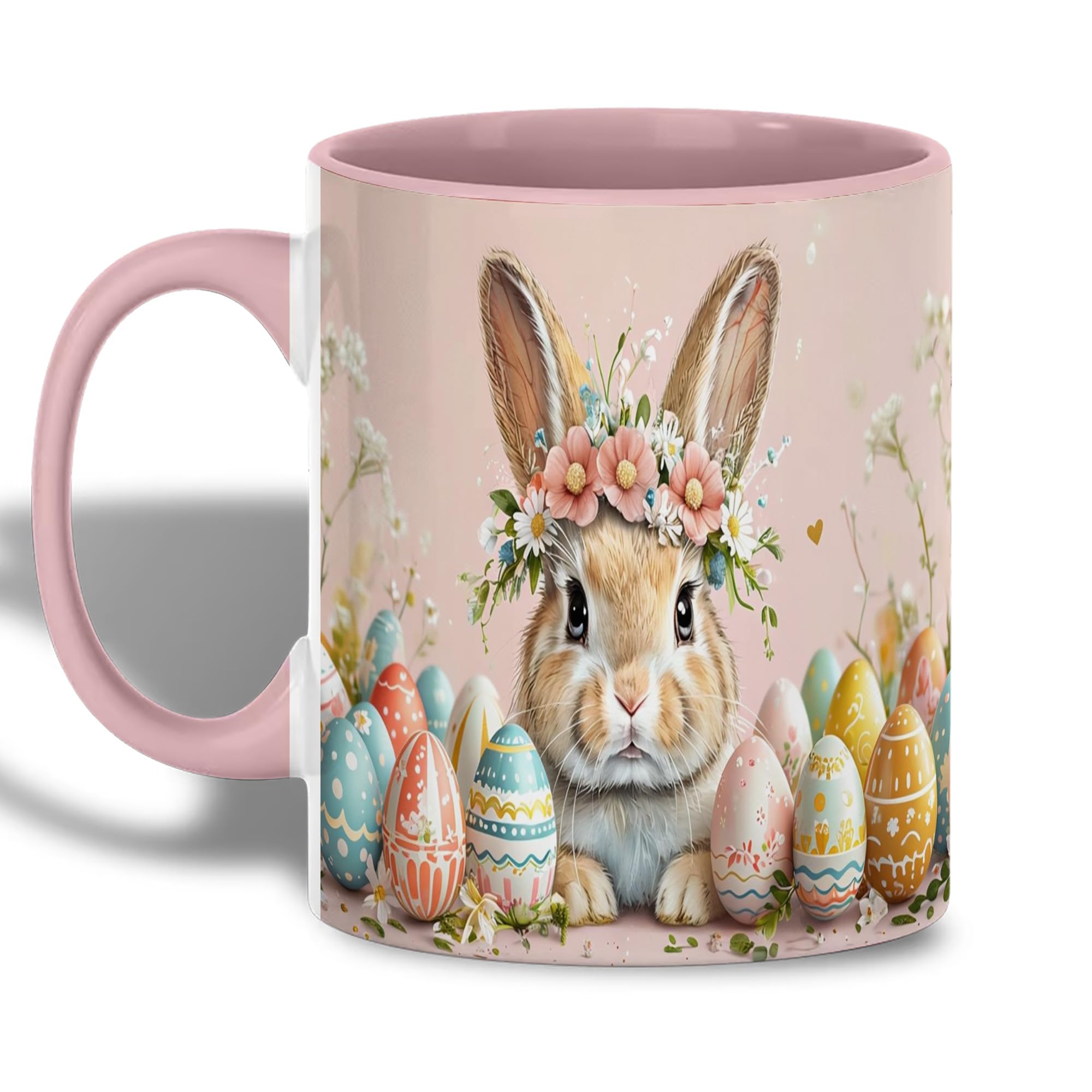 ATSAKA Easter Bunny Mug, 11oz Ceramic Coffee Cup with Floral Crown Rabbit and Colorful Decorated Eggs, Spring Holiday Tea Mug Gift Idea for Women or|Kitchen & Dining
