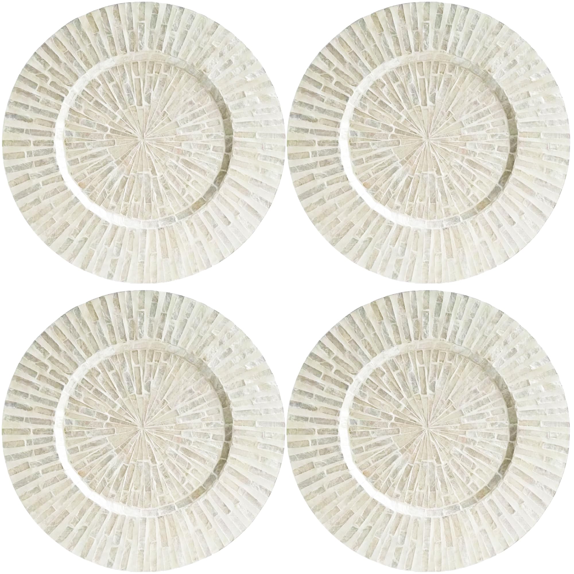 chicapica Set of 4 Wooden Charger Plates with White MOP Inlay – Handcrafted Round Shell Mosaic Underplates for Wedding, Party & Dining Table Decor (|Kitchen & Dining