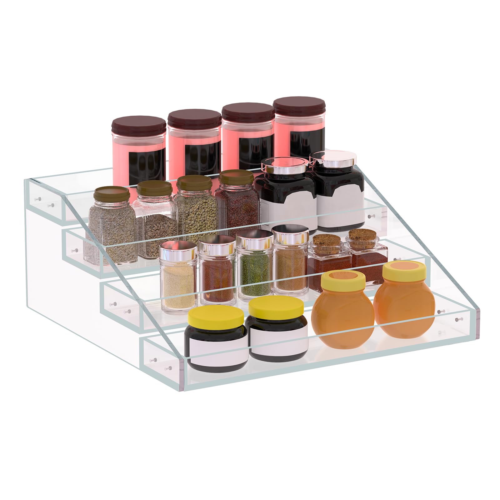 PMMASTO Widen Tiered Spice Rack, Seasoning Organizer, Clear Acrylic Vertical Shelves Can Organizer for Countertop, Cabinet, Pantry, Kitchen|Kitchen & Dining