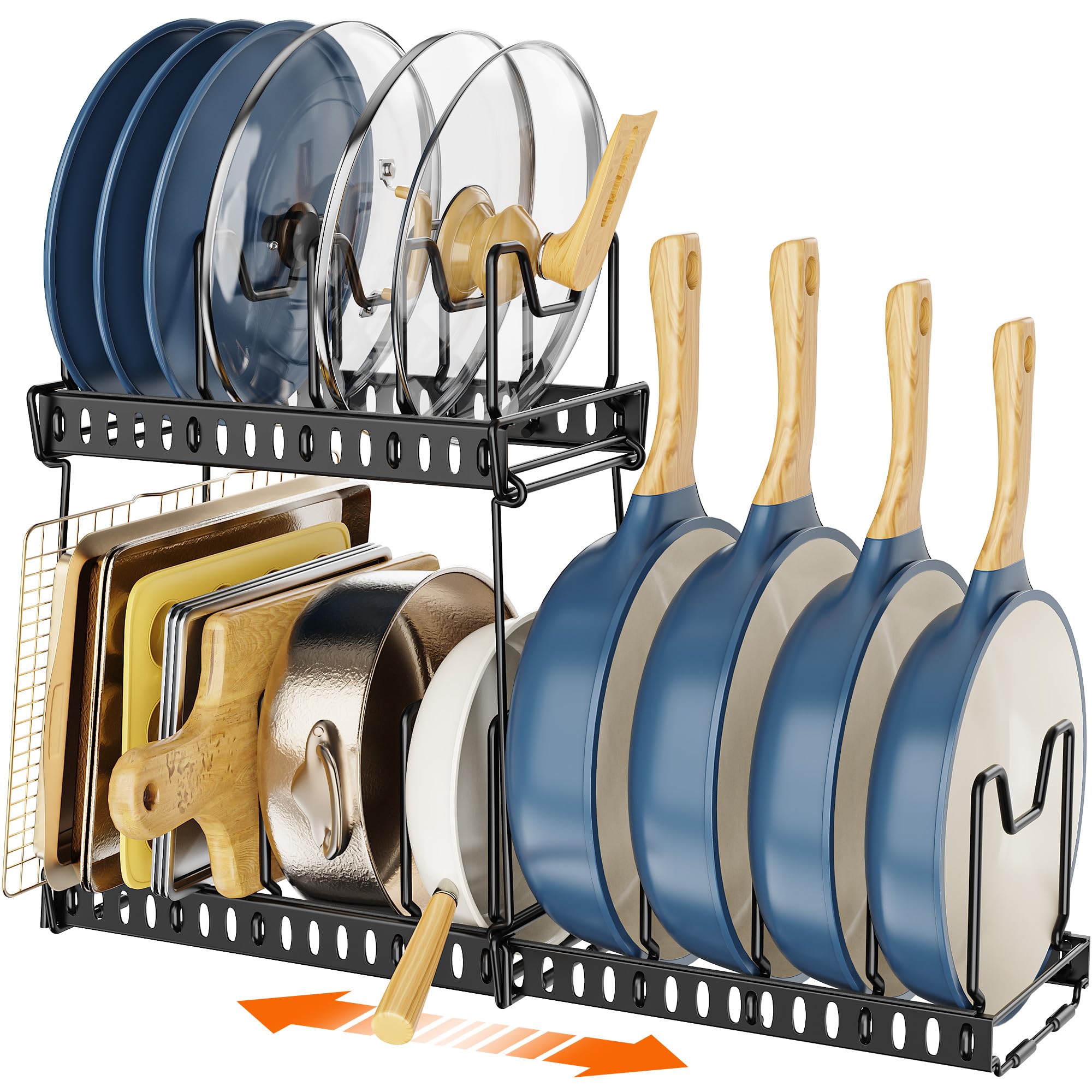 MonaSixy 3 Pack Expandable Pan Organizer for Cabinet, Pot and Pan Organizer Under Cabinet Lid Holder Rack with 14 Adjustable Compartment for Kitchen|Kitchen & Dining