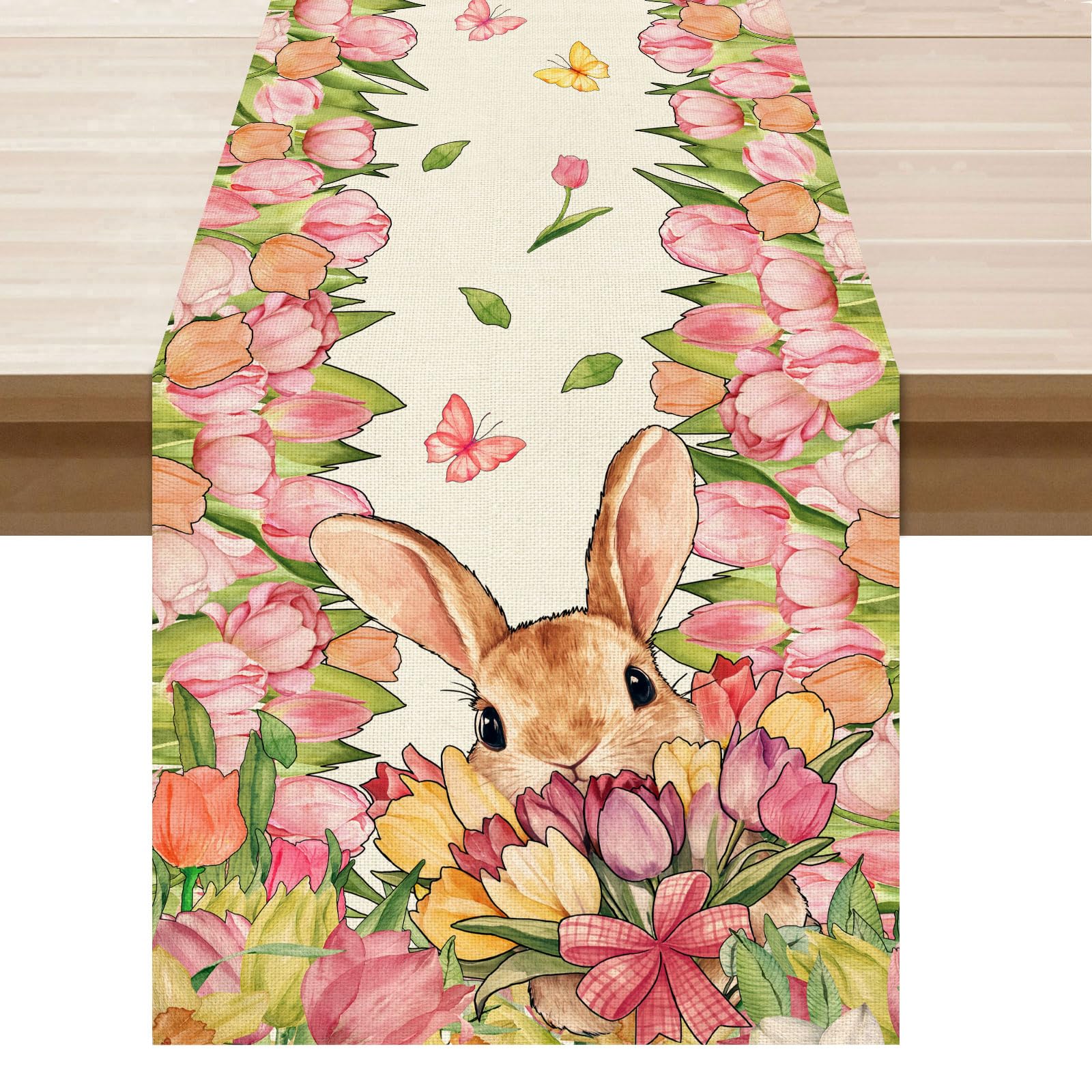 XCHI Bunny Tulips Flowers Rabbits Easter Table Runner Table Decoration for Party Home Kitchen Dining Holiday Decor 13x72 Inch|Kitchen & Dining