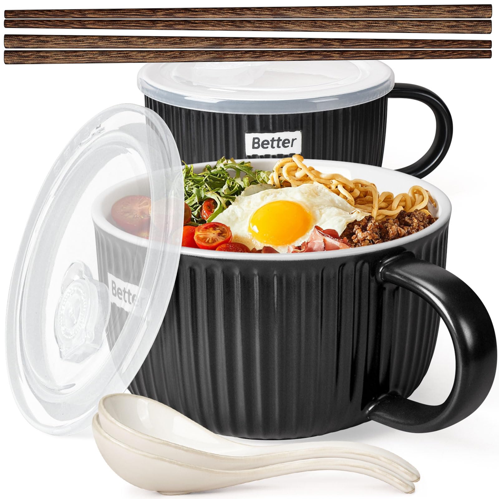 Artena 38 oz Soup Bowls with Handles, Lids, Spoons & Chopsticks – 6 Inch Large Microwave Safe Ceramic Ramen Bowls, Soup Mugs & Cereal Bowls for|Kitchen & Dining