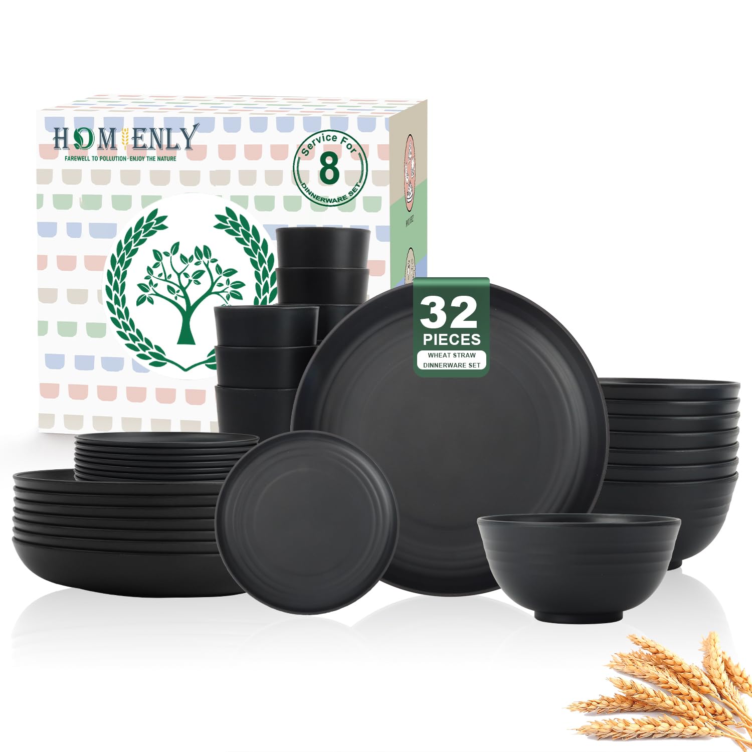 Homienly Wheat Straw Plates and Bowls Sets, Dishes Set for 8, Wheat Straw Dinnerware Set for Kitchen 32-Piece - Deep Plates Sets, Cereal Bowls with|Kitchen & Dining