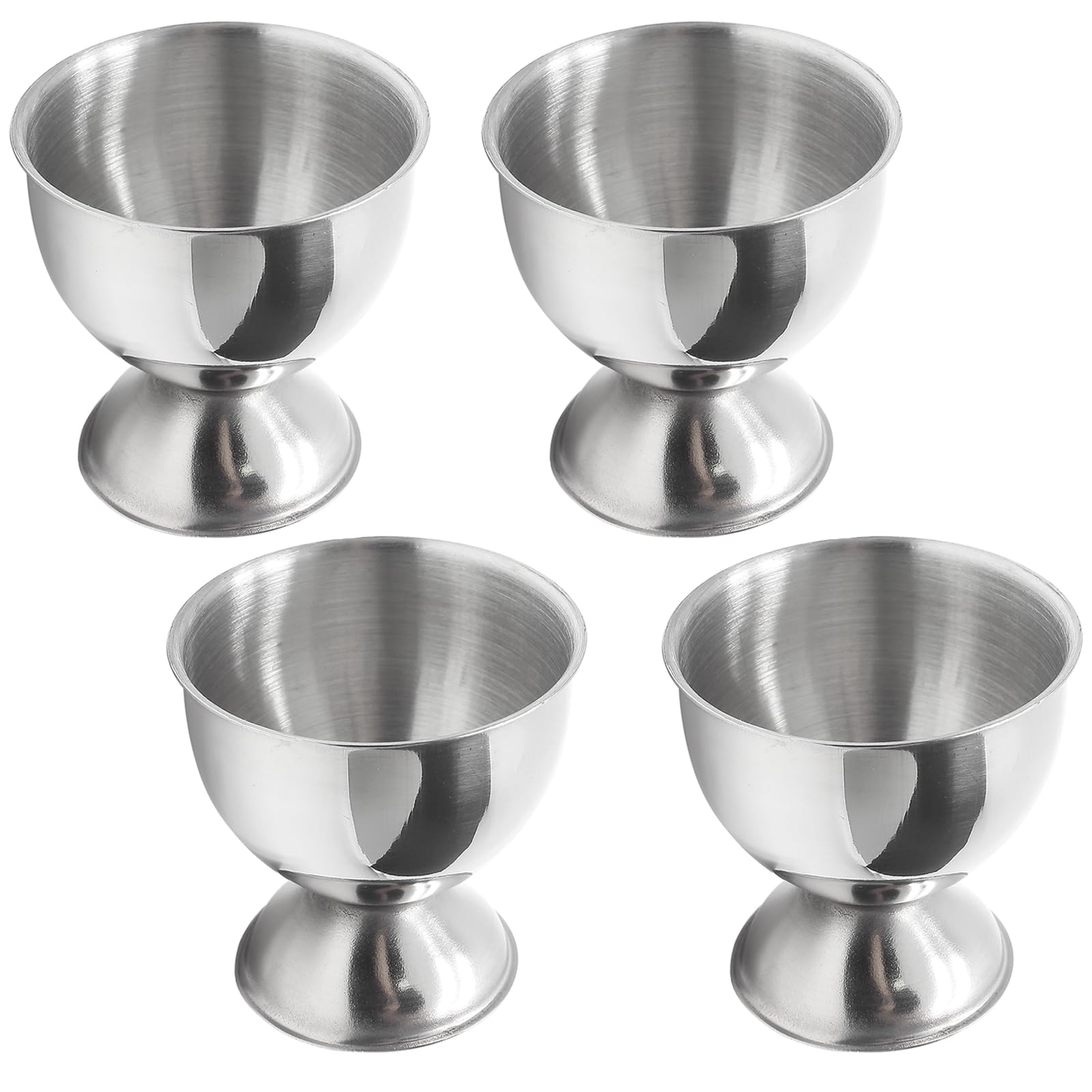 Qjaiune 4pcs Silver Egg Cups Stainless Steel Egg Holder, Soft Boiled & Hard Boiled Egg Tray Kitchen Gadgets Tools, 46mm x 48mm Small Egg Cup|Kitchen & Dining