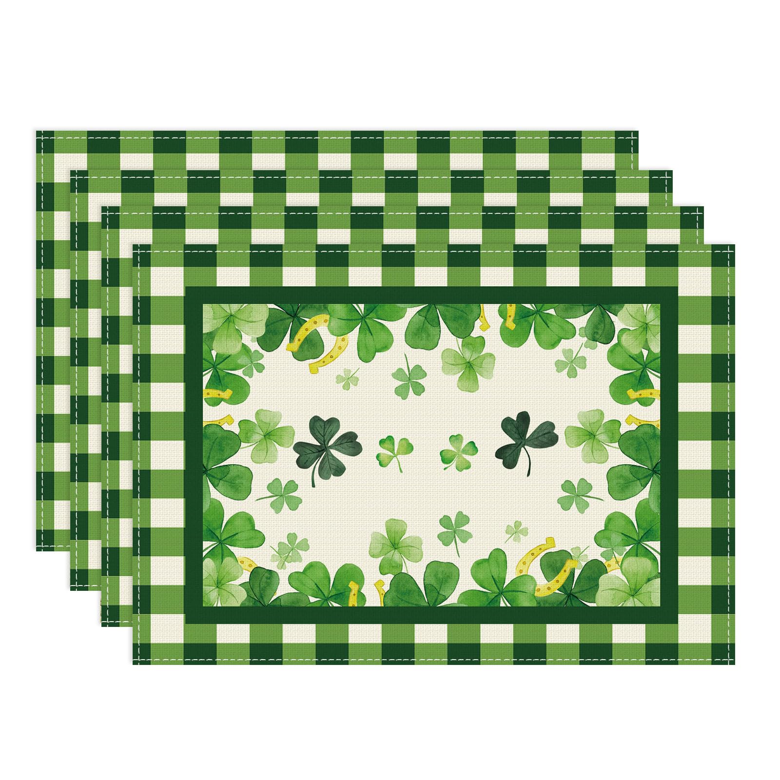 XCHI Green Plaid Four-Leaf Clovers Shamrocks Horseshoes St. Patrick's Day Placemats Set of 4 Table Mats for Party Home Kitchen Dining Table|Kitchen & Dining