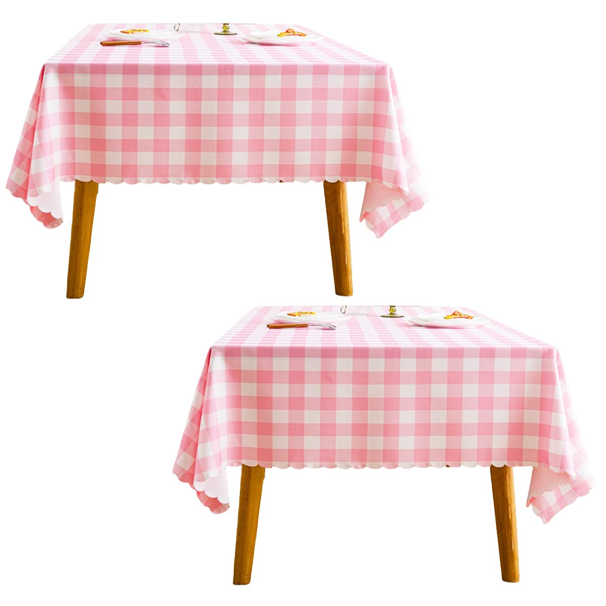 MANGATA CASA 2Pcs Pink Gingham Tablecloth for Rectangle Tables- Checkered Table Cloth Waterproof Kitchen & Table Linens-Polyester Buffalo Plaid|Kitchen & Dining