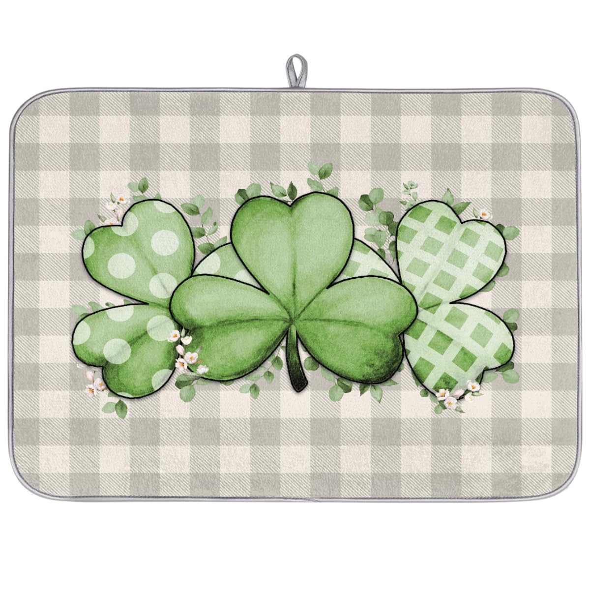 DXTKWL St Patricks Dish Drying Mat for Kitchen Counter, Shamrock Lucky Leaf Buffalo Plaid Dish Drainer Mat Absorbent Non Slip Drying Mats Pad Coffee|Kitchen & Dining