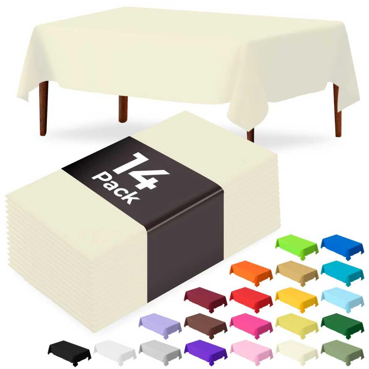 JSQBSECL 14 Pack Beige Plastic Table Cloth 54in x 108in Disposable Rectangle Plastic Table Cover for Parties (Beige, 54" X 108" Rectangle)|Kitchen & Dining