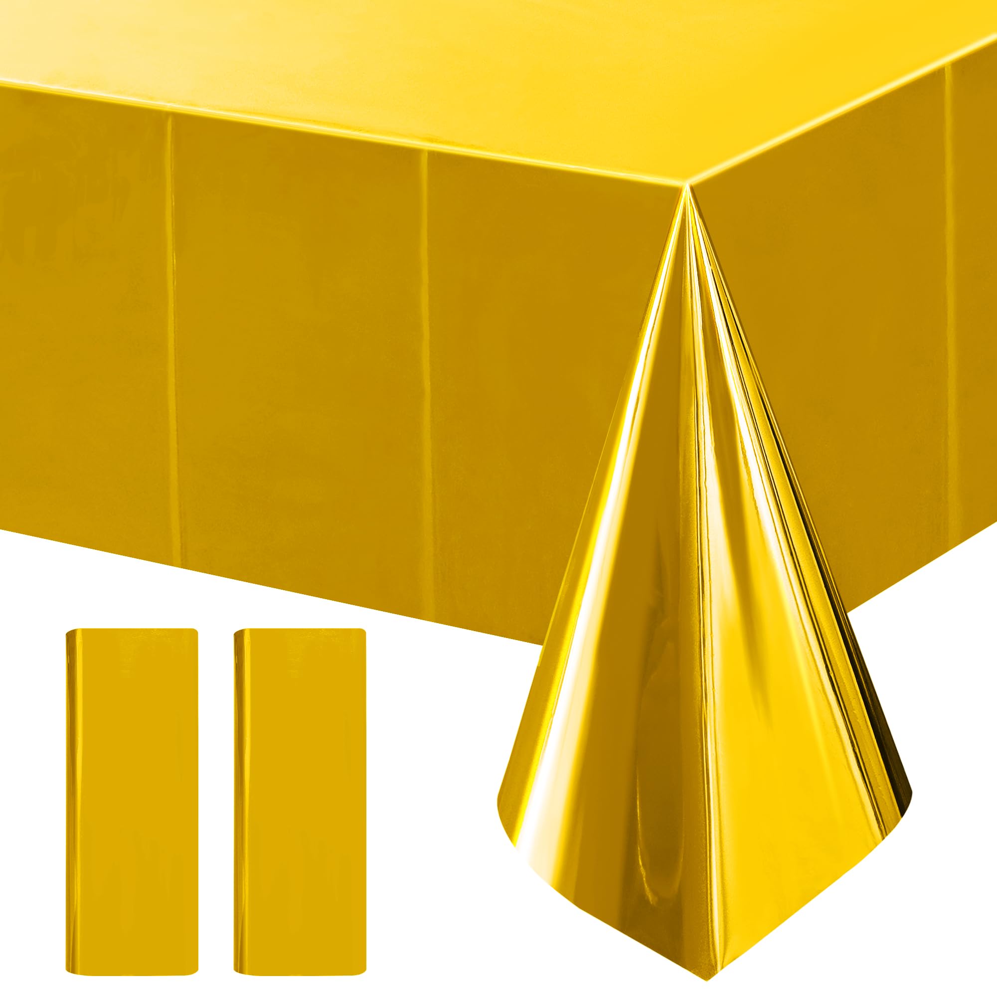 Just Shimmer 2pcs Gold Foil Tablecloth 54 * 72 Inch Plastic Wedding Birthday Party Table Cloths Waterproof Disposable Table Cover for Christmas|Kitchen & Dining