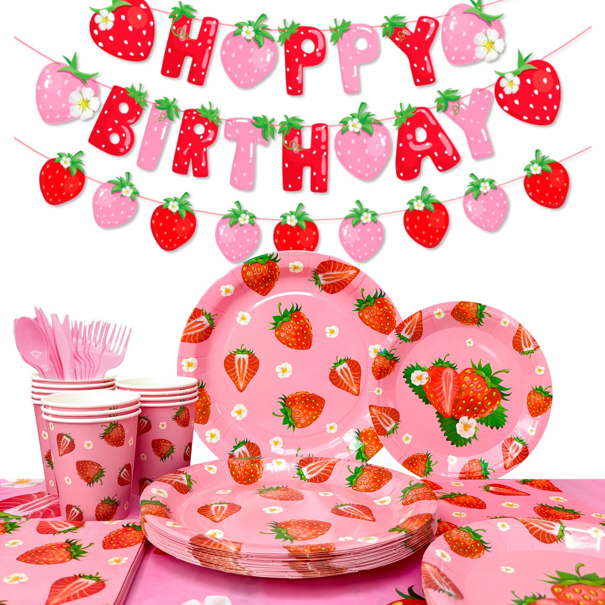 Strawberry Birthday Party Tableware, 16 Guests Strawberry Party Tableware Set, Strawberry Plates Napkins Cups Tablecloth Banner etc for Strawberry|Kitchen & Dining
