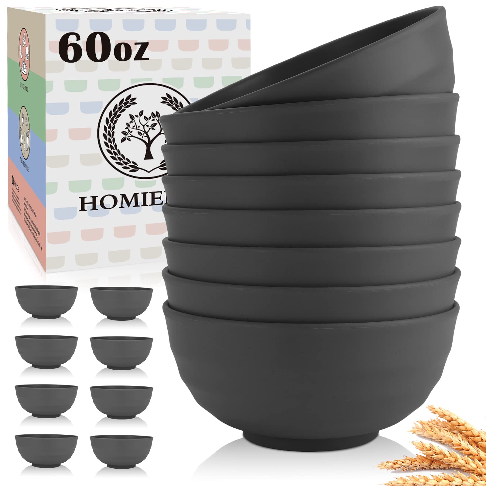 Homienly Wheat Straw Bowls Set of 8, 60oz Extra Large Unbreakable Bowls - Lightweight Alternative to Plastic Serving Bowls for Cereal, Ramen & Soup,|Kitchen & Dining