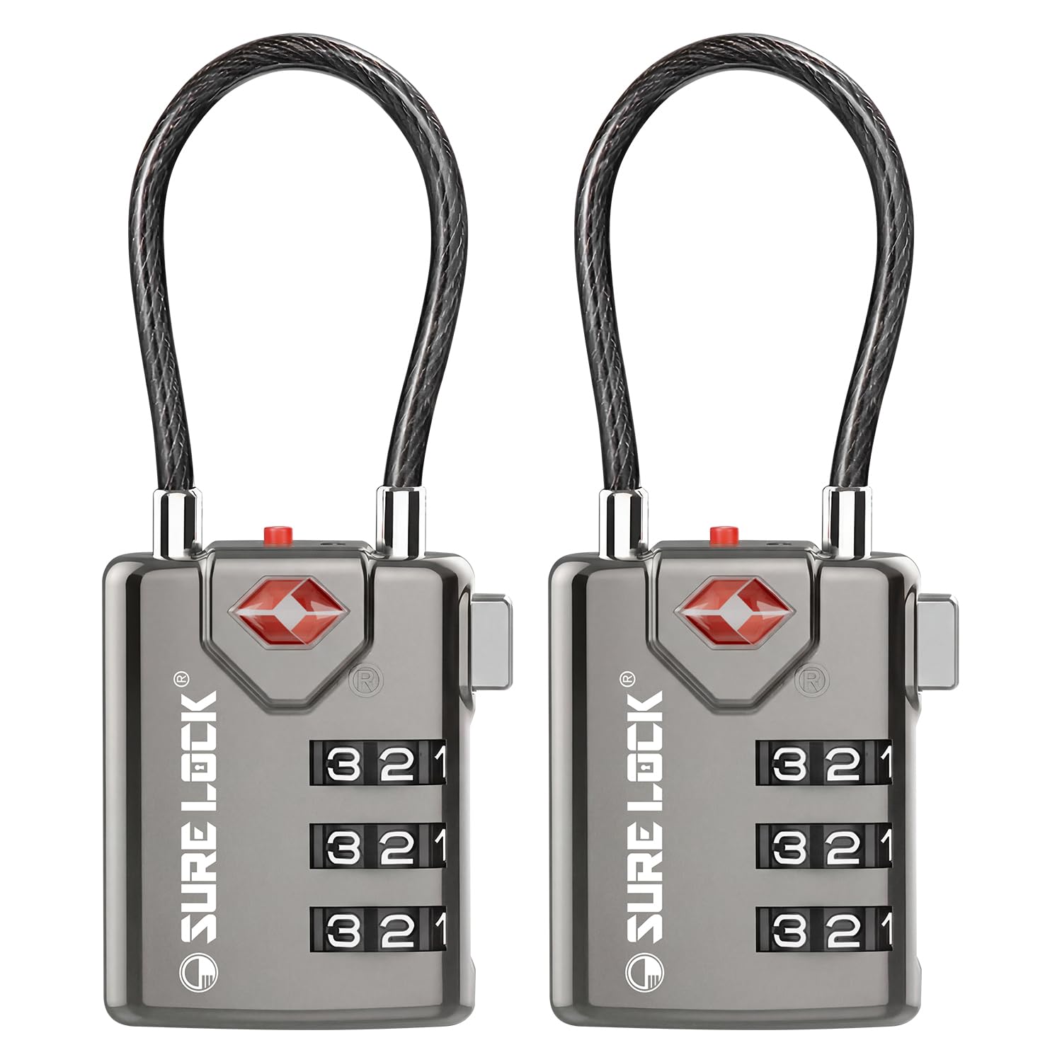 SURE LOCK TSA Approved Combination Luggage Locks with Open Alert Indicator – Durable Zinc Alloy Cable Travel Locks with Large Easy-Read Dials for|Luggage & Bags