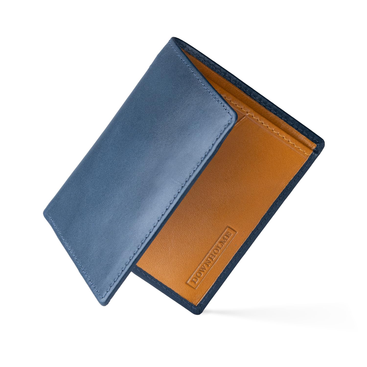Downholme Men's Bifold Slim Silhouette Leather Wallet (Navy Blue)|Luggage & Bags