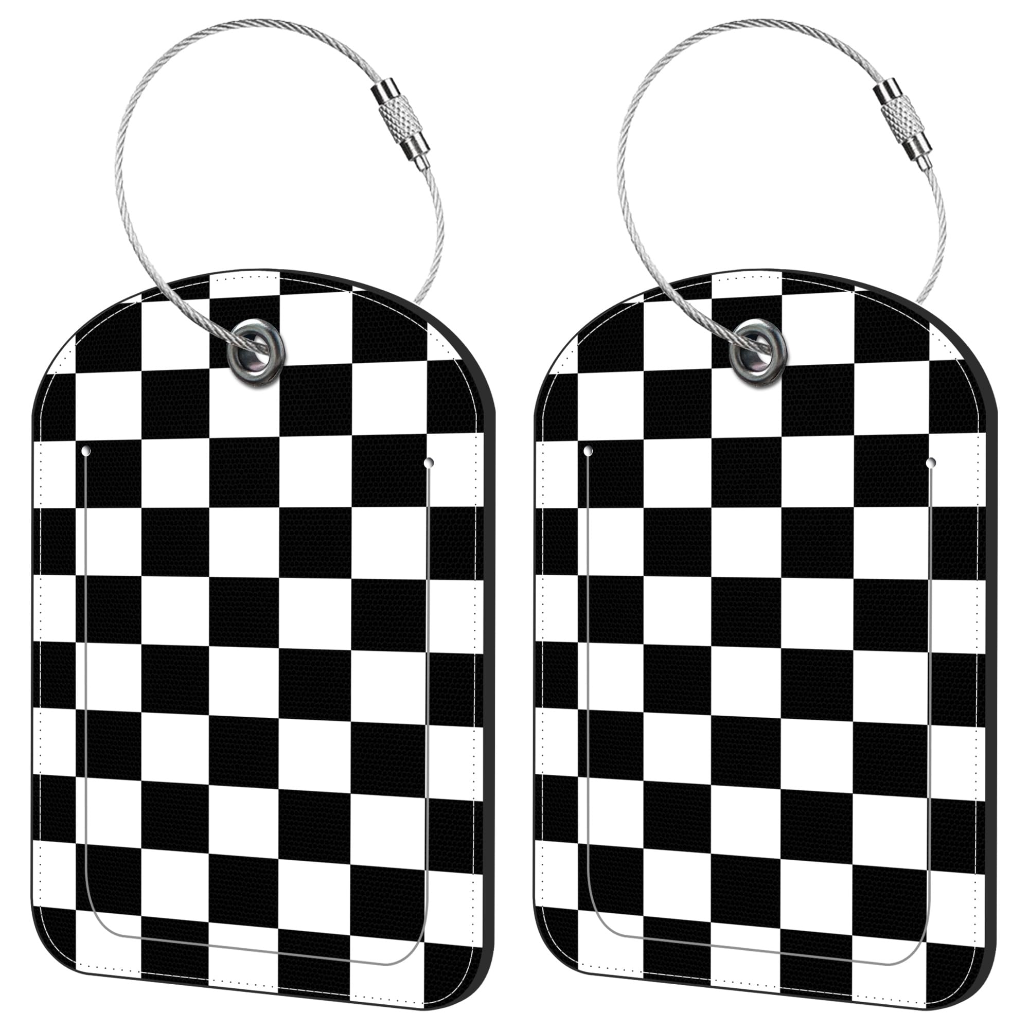 iapodiad 2 Pack Cute Luggage Tag for Suitcases Checkered Texture Leather Luggage Tags with Stainless Steel Loop Privacy Flap Name Tags,Men and Women|Luggage & Bags