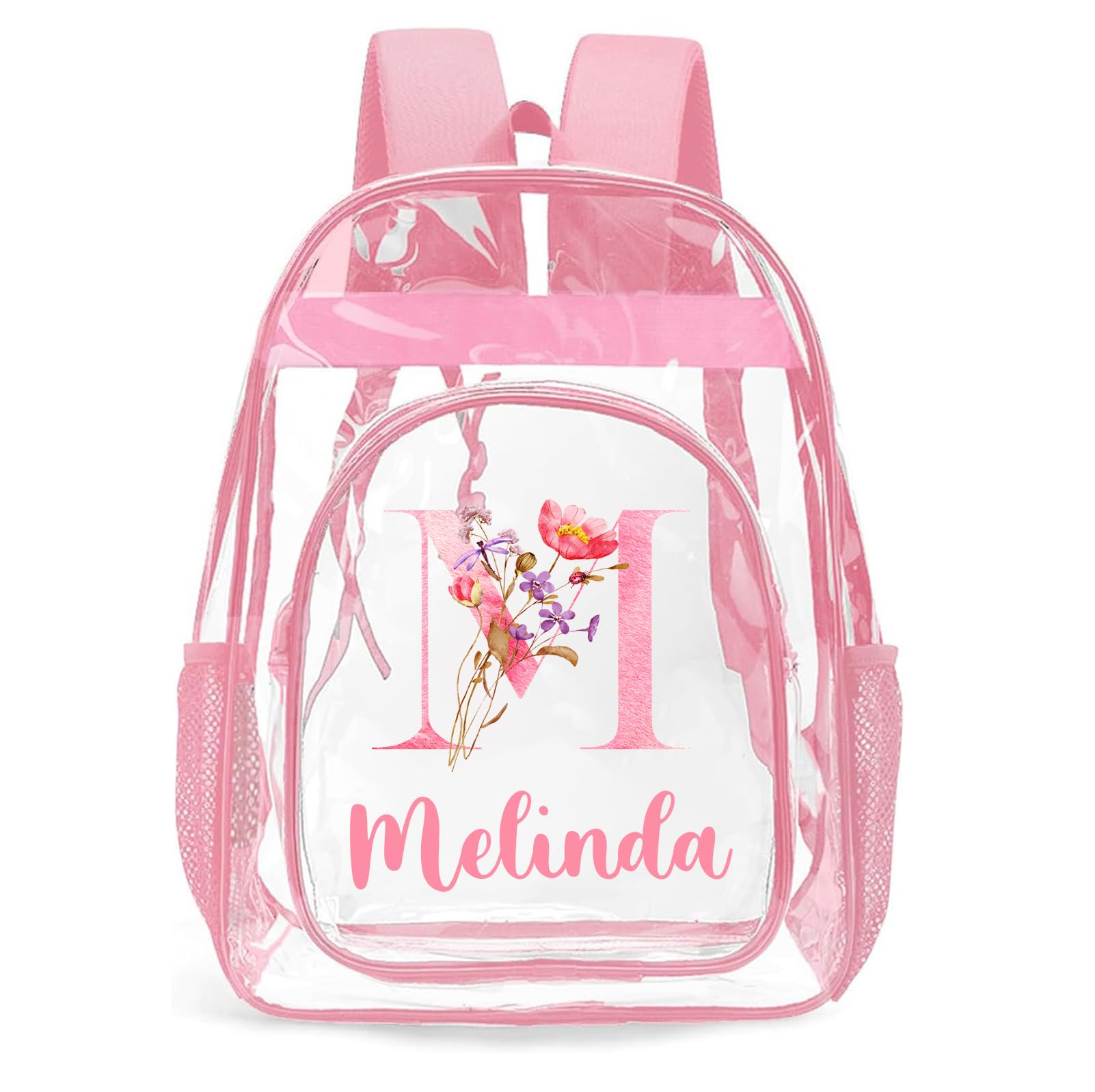 UJDUYSD Personalized Clear Backpacks with Name, Custom Flowers Clear Backpack for Gifts, with Reinforced Strap & Large Capacity PVC Transparent|Luggage & Bags