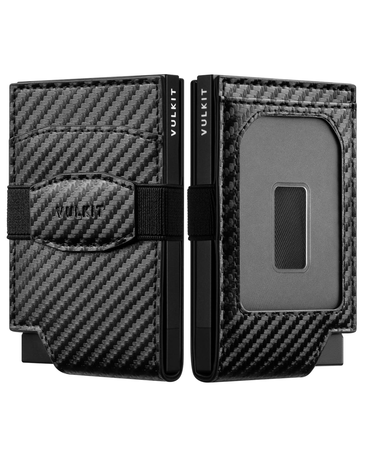 VULKIT Pop up Card Wallet with Money Strap Leather Front Pocket Card Holder with ID Window RFID Blocking Business Card Case for Men (Carbon Black)|Luggage & Bags
