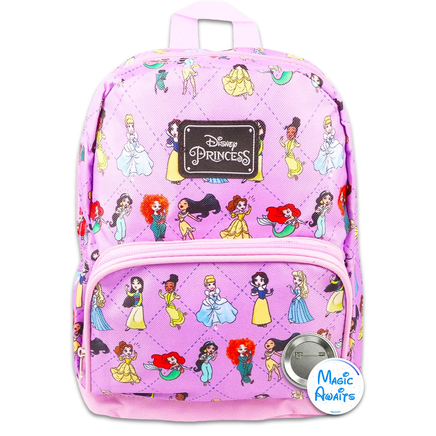 Disney Princess Mini Backpack - 10" Exclusive Woven Small Backpack with Front Pocket and Button Bundle | Adjusts to Fit Women, Teens, Girls, Kids|Luggage & Bags