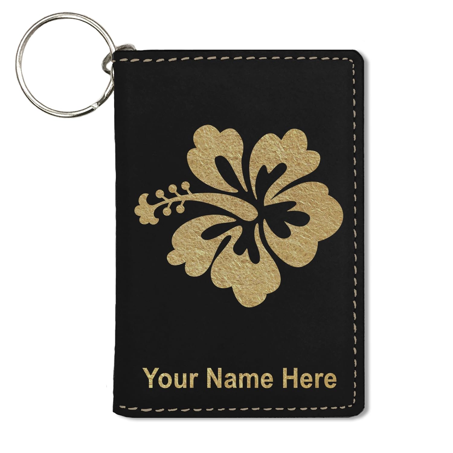 LaserGram ID Holder Wallet, Hibiscus Flower 1, Personalized Engraving Included (Black with Gold)|Luggage & Bags