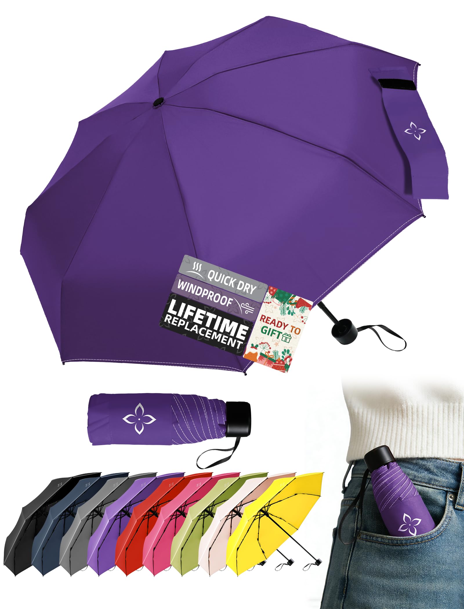 LILAC Windproof Travel Mini Umbrella - Small Compact and Portable for Rain & Sun, Manual Open Close with No Rebound for Seniors & Kids, Reflective|Luggage & Bags