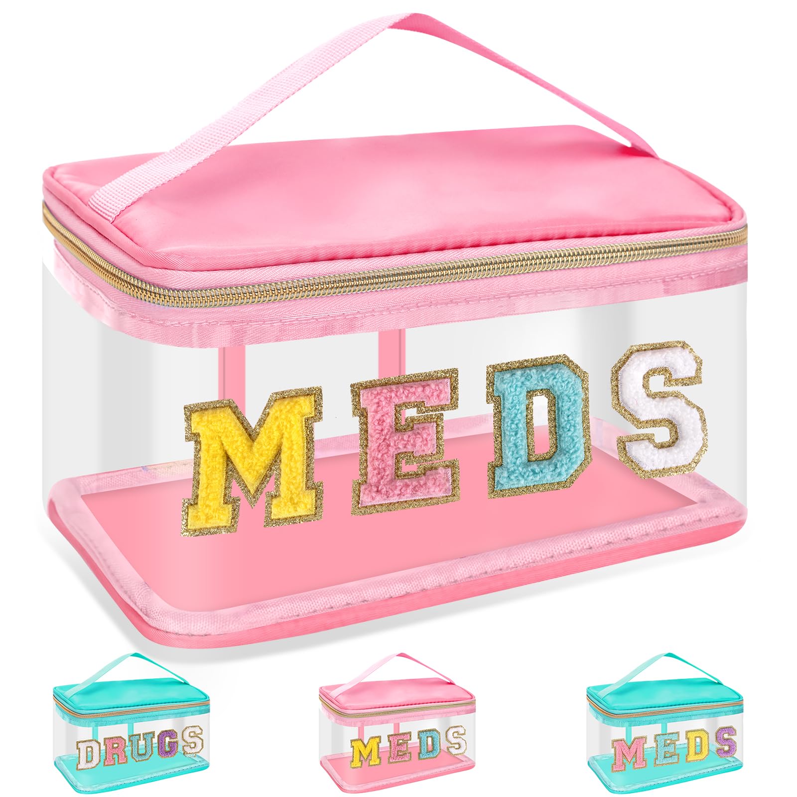Chenille Letter MEDS Makeup Pouch, Waterproof Portable Medicine Organizer for Travel, Preppy Small Zipper Pouch with Handle, Nylon Nurse Toiletry Bag|Luggage & Bags