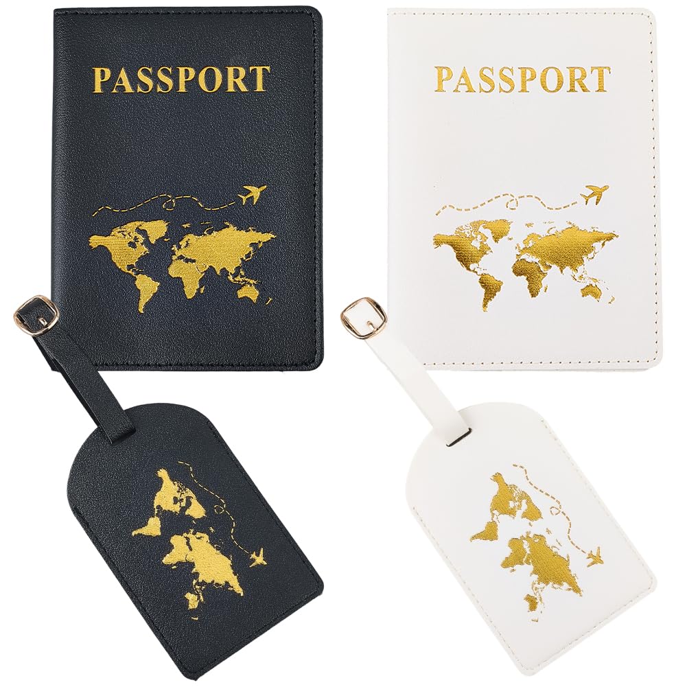 CALFOVERA 2 Set Mr and Mrs PU Leather Travel Holder Set Honeymoon Map Passport Covers Card Protector Sleeve Books Case with Luggage Suitcase Tags|Luggage & Bags
