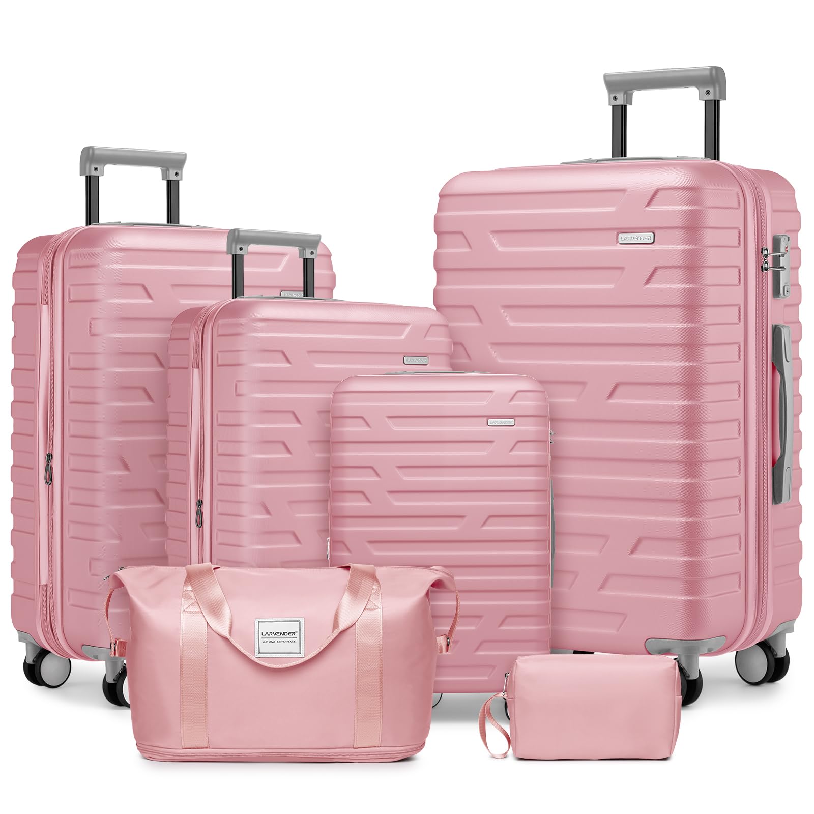 Clyrava Pink 6 Piece Luggage Set Hard Shell - Expandable Suitcases with Spinner Wheels and Duffel Bags for Family Travel, Durable Carry On Luggage|Luggage & Bags