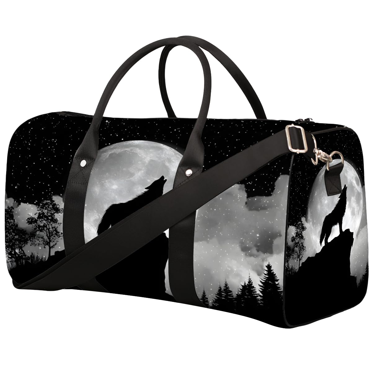 Travel Duffel Bag, Animal Moon Wolf Sports Tote Gym Foldable Weekender Workout Bags Carry-on Luggage Handle Overnight Shoulder Bag for Women Men|Luggage & Bags