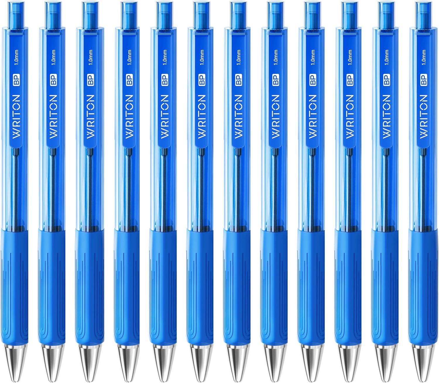Writon Retractable Ballpoint Pens, Triangle Grip and Barrel, 1.0mm Medium Point, Blue Ink, 12 Pack|Office Supplies