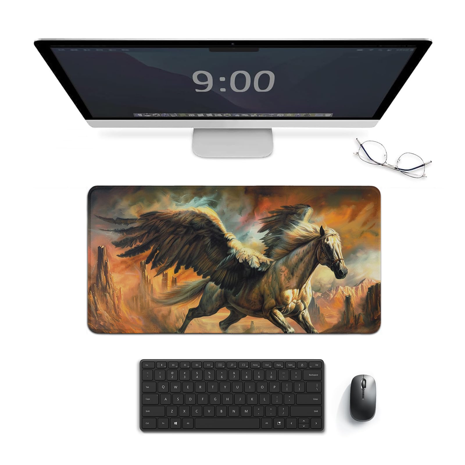 QEOPGNE Large Mouse Pad Gaming Mousepad Pegasus Majestic Horse Fantasy Vintage Animals Desk Mat Big Mousepad Extended Keyboard Computer Pad Office|Office Supplies