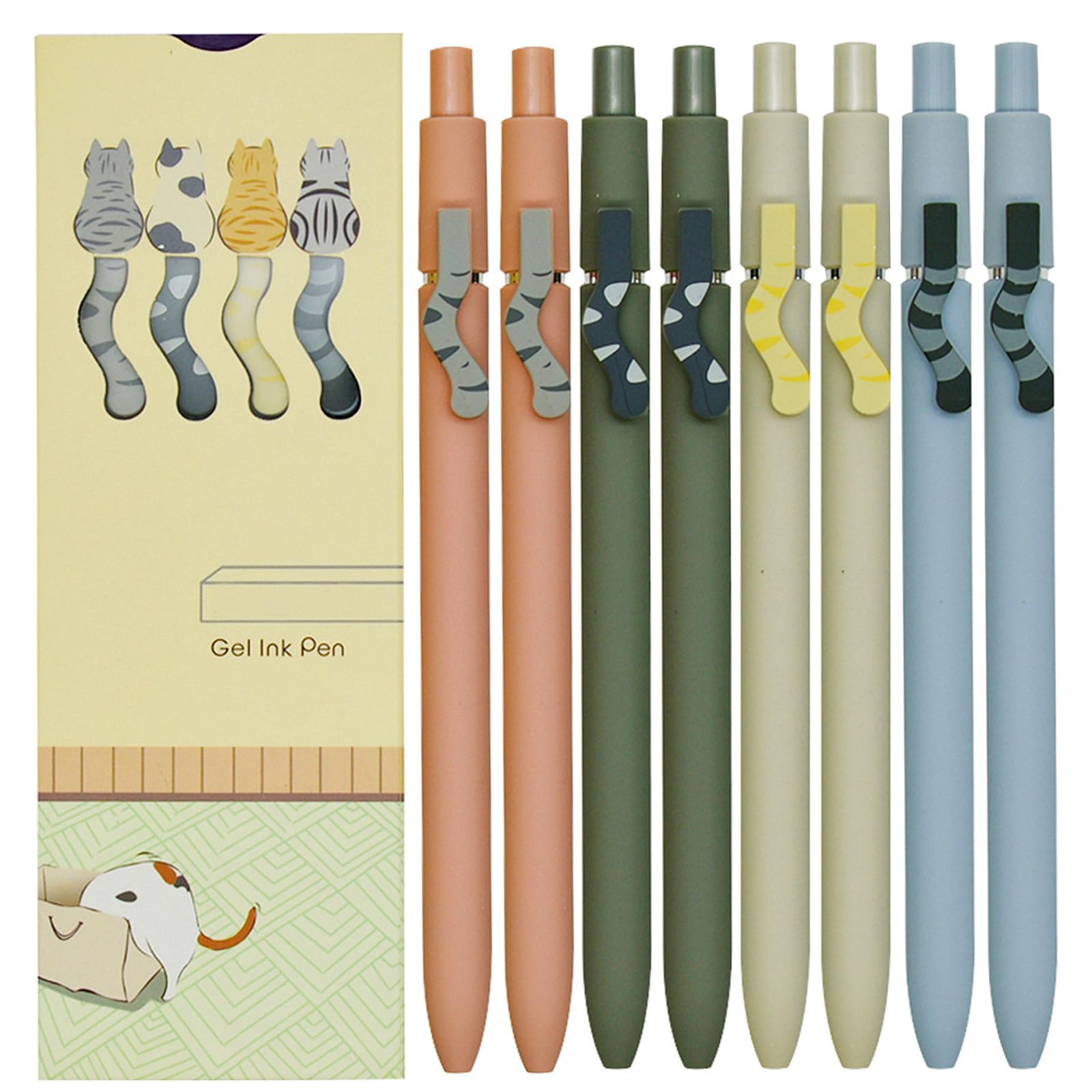 Maydahui 8 Pcs Cute Cat Tail Pens Retractable Kawaii Cat Pens Novelty Animal Tail Click Rollerball Pens Black Ink for Cat Lovers Shcool Supplies|Office Supplies