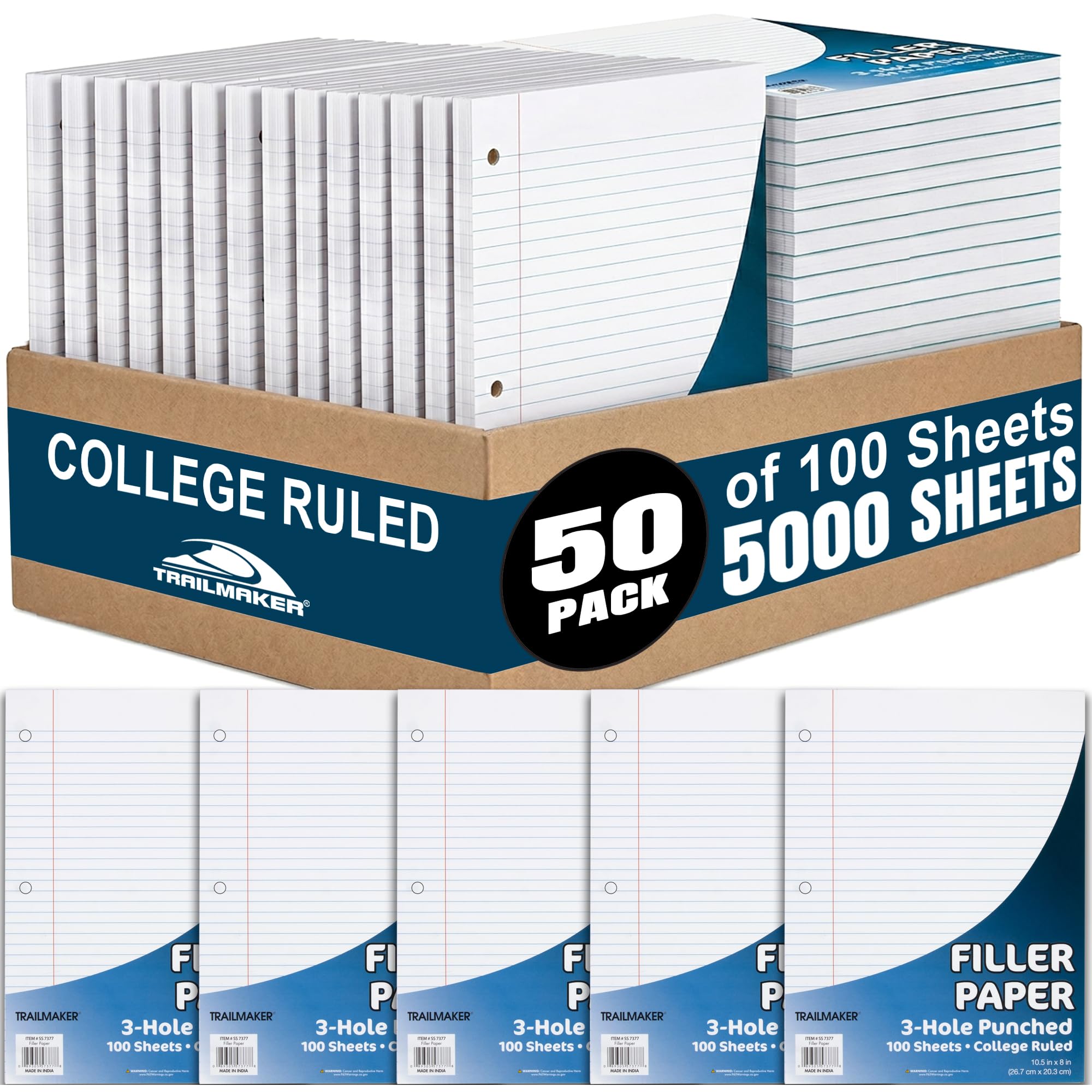 Trail Maker (50 Pack) Bulk Filler Paper College Ruled, 8 x 10-1/2 Inch College Ruled Paper, 3 Hole Punch, Loose Leaf Notebook Paper for 3 Ring Binders|Office Supplies