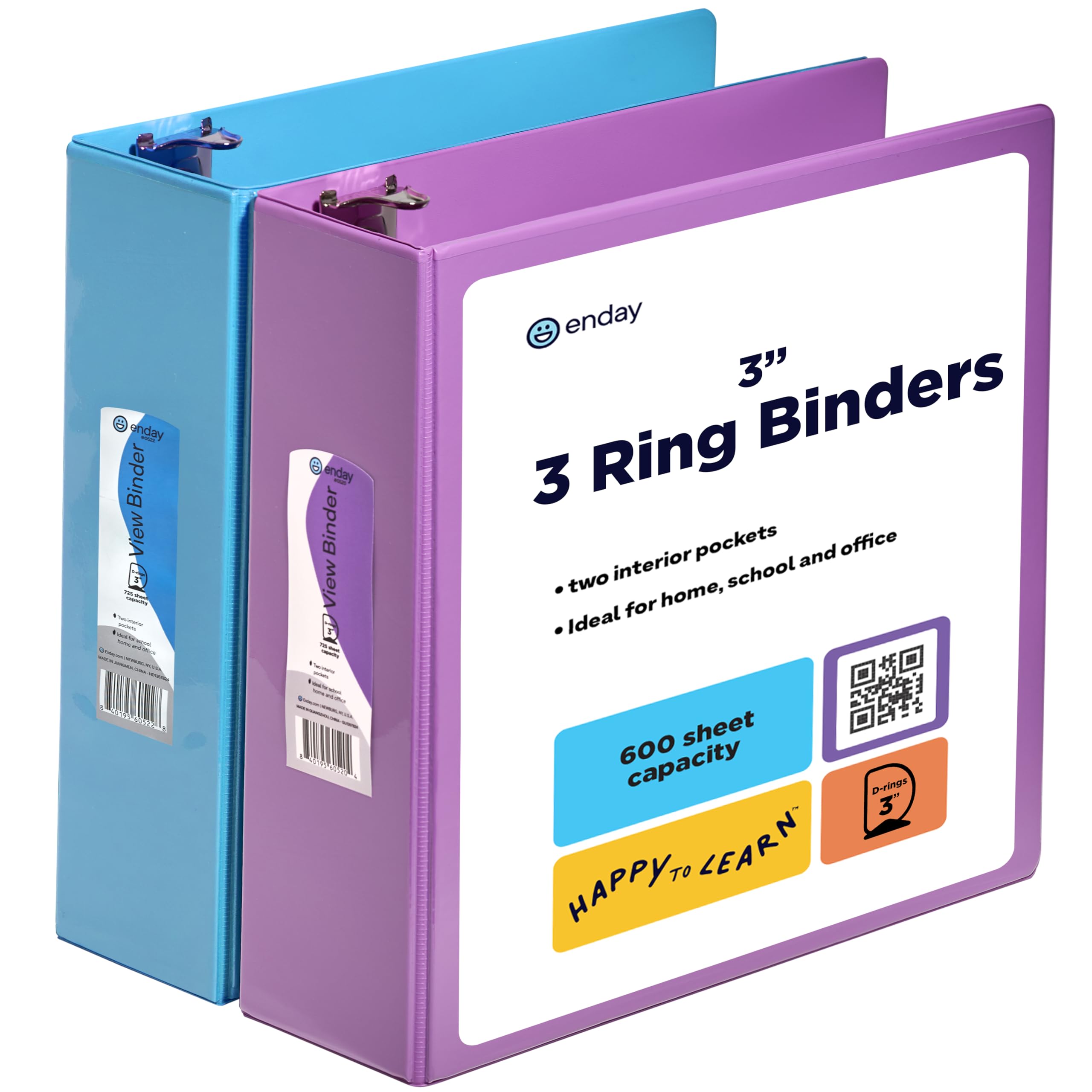 3 Inch Binder (2 Pack) Blue and Purple 3 Ring Binder 3 inch, Clear View Cover with 2 Inside Pockets, Three Ring Binders for Home, Office and School|Office Supplies