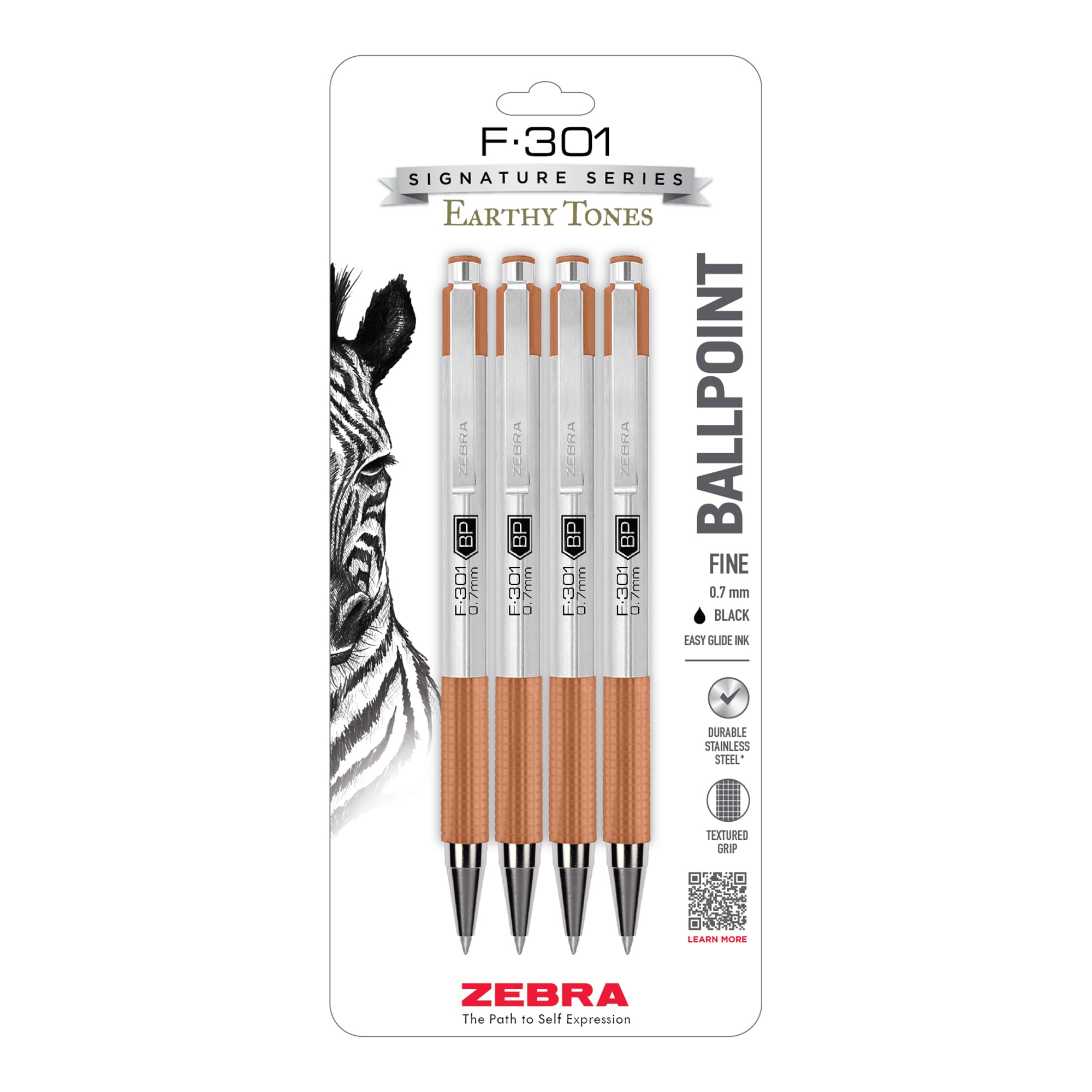 Zebra Pen F-301 Signature Series Retractable Ballpoint Pen, 0.7mm, Black Easy-Glide Ink, Stainless-Steel Barrel, Terracotta Earth Tone Accents, Best|Office Supplies