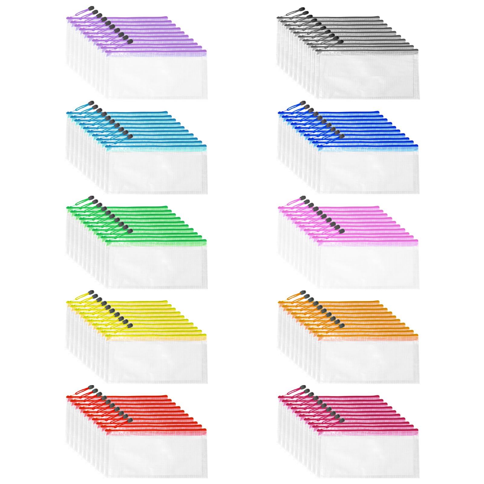Hyuetrsa 100 Pcs A6 Mesh Zipper Pouch Multipurpose Waterproof Pencil Bags 9.4" x 4.5" Small Mesh Zipper Pouches for School Office Supplies|Office Supplies