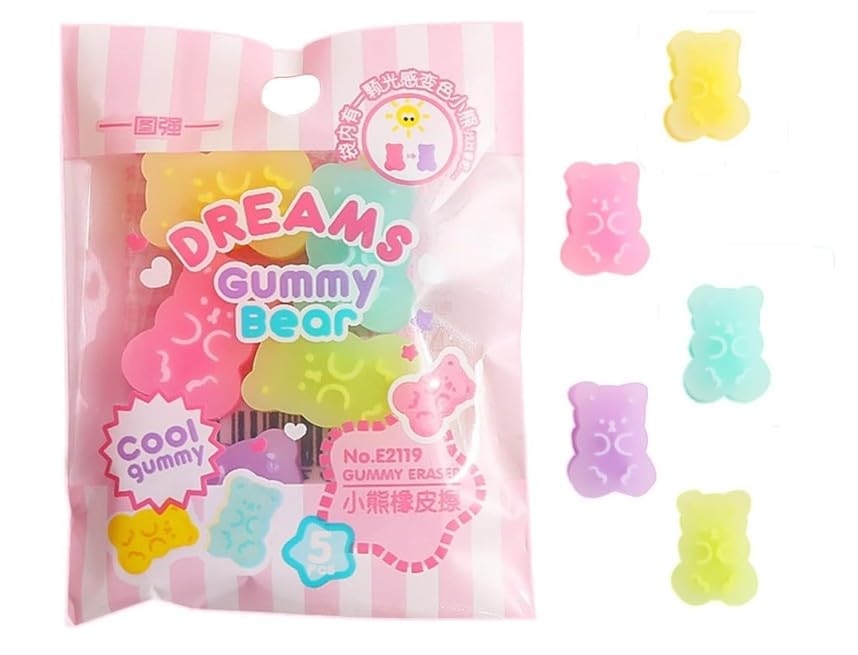 5 Pcs Colorful Cute Erasers - Gummy Bear Cabochons | Cartoon Bear Pencil Erasers | Erasers Animals | Interactive Eraser Pets | Stationery Supplies and|Office Supplies