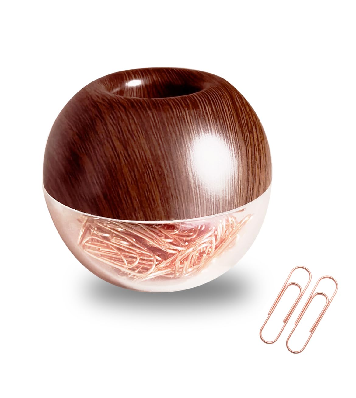 Walnut Wood Paper Clip Holder , Wooden Magnetic Paper Clip Dispenser with Rose Gold PaperClips 100pcs 28mm(1.1") Cute Office Supplies for Desk|Office Supplies