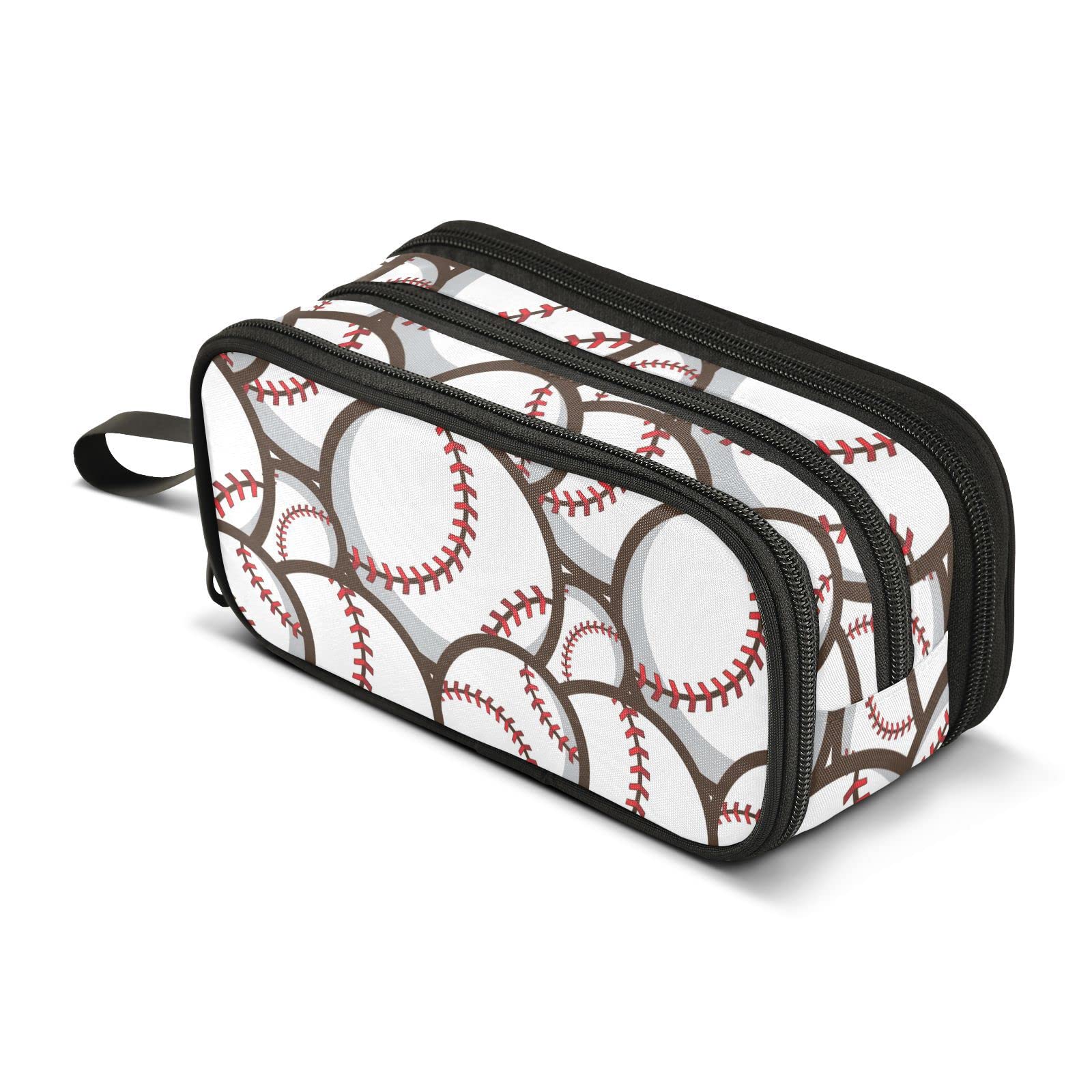 ZAZYXTJ Baseball Ball Large Capacity Pencil Case 3 Compartment Pen Pouch Storage Canvas Makeup Bag for School Office Teen Girl Boy Men Women|Office Supplies