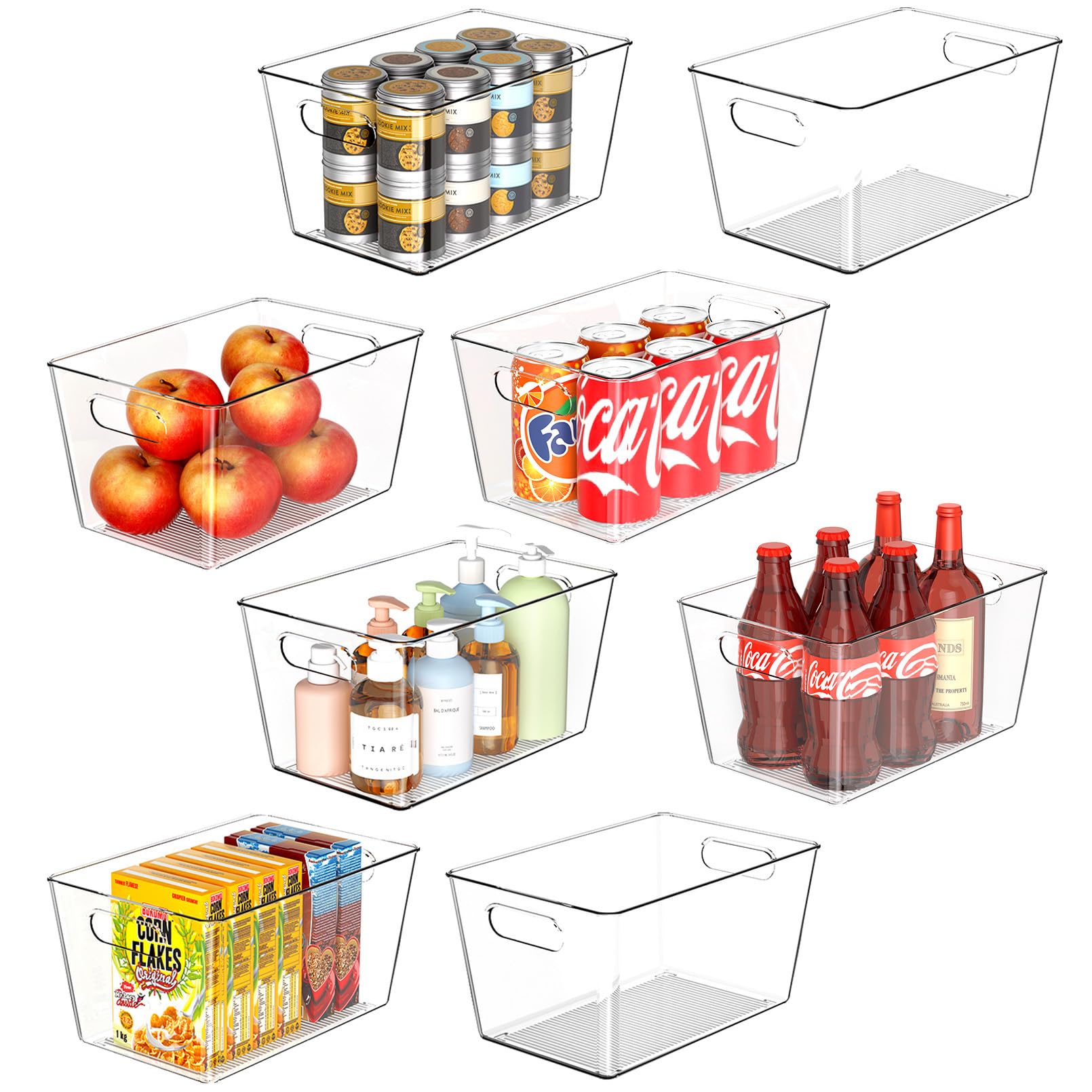 Joymeezo 8 Pack Large Clear Plastic Storage Bins, Refrigerator Cabinet Organizers with Handles for Pantry Organization and storage, Perfect for Home|Office Supplies
