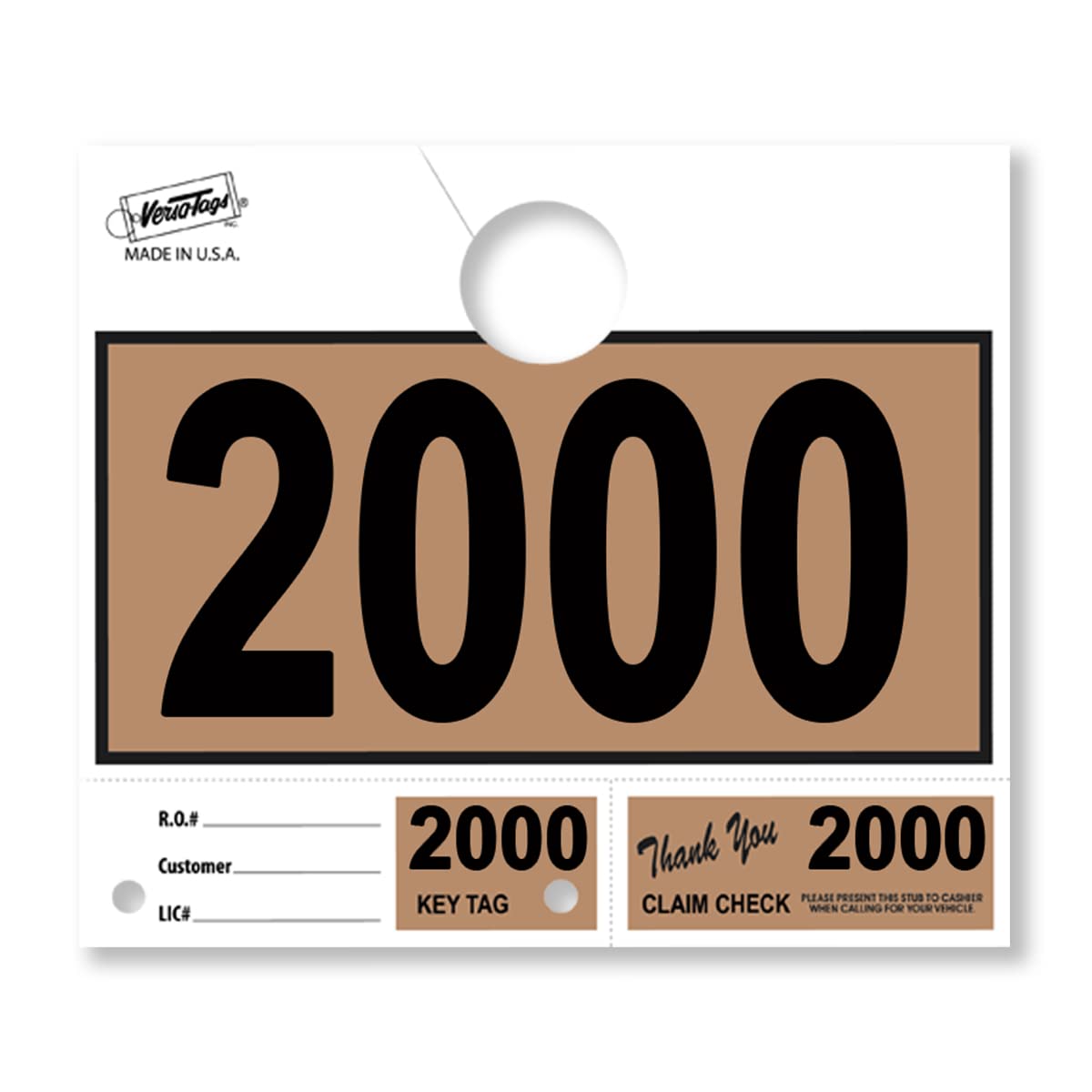 Versa-Tags 1000 Tan Car Dealer Service Hang Tags Service Dispatch Numbers, Service Department Numbered Key Tags for Mechanic Repair Shop 3 Part Key|Office Supplies