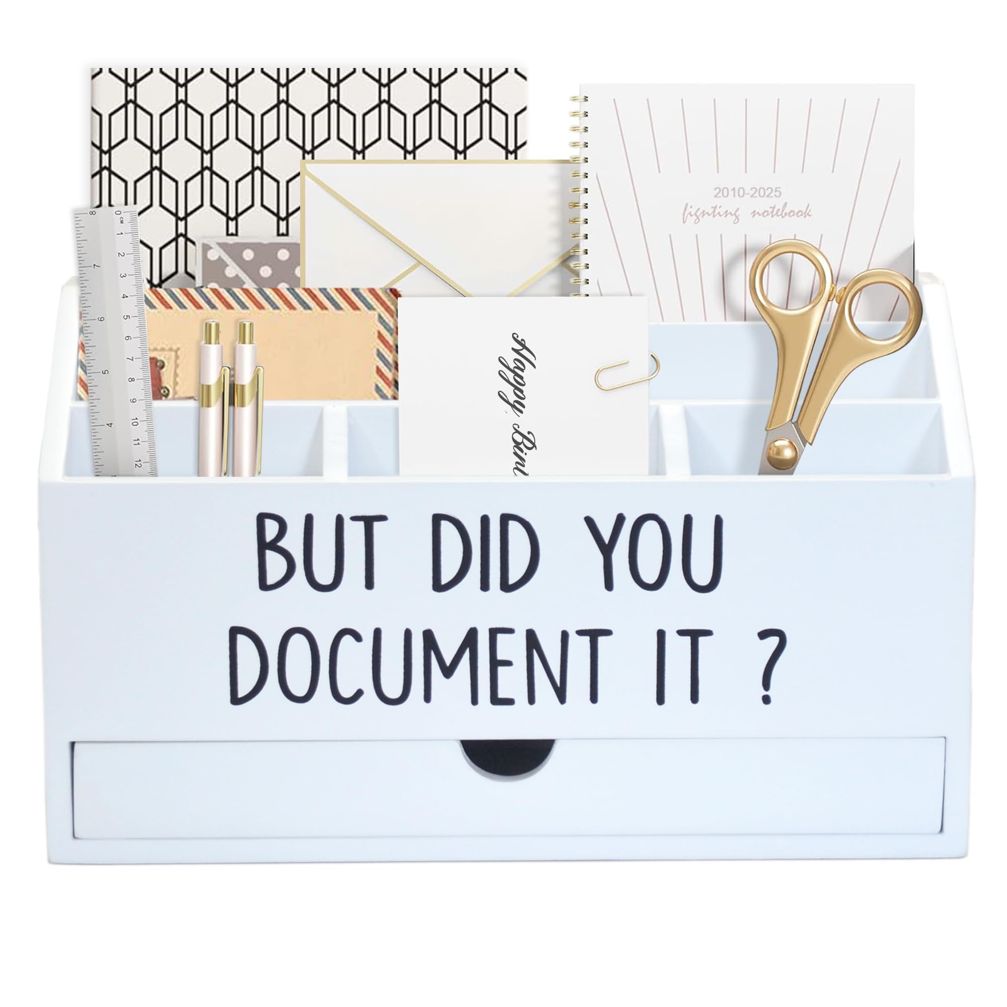 EXQUIDECA Wooden White Rustic Countertop Mail Storage Holder with Drawer and Compartments - Office Desk Accessories and Workspace Organizers - Desktop|Office Supplies