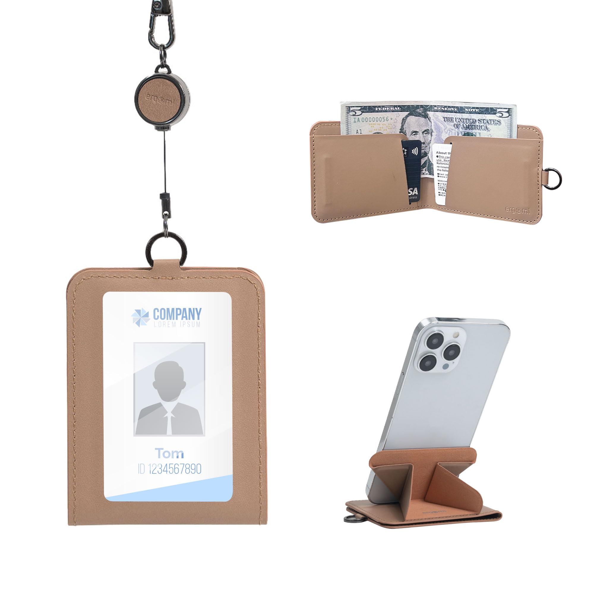 ergomi Retractable Badge Holder with 12-inch Lanyard, ID Card Holder Wallet with Phone Stand, Vegan Leather Slim Badge Wallet for Work, Office, Travel|Office Supplies