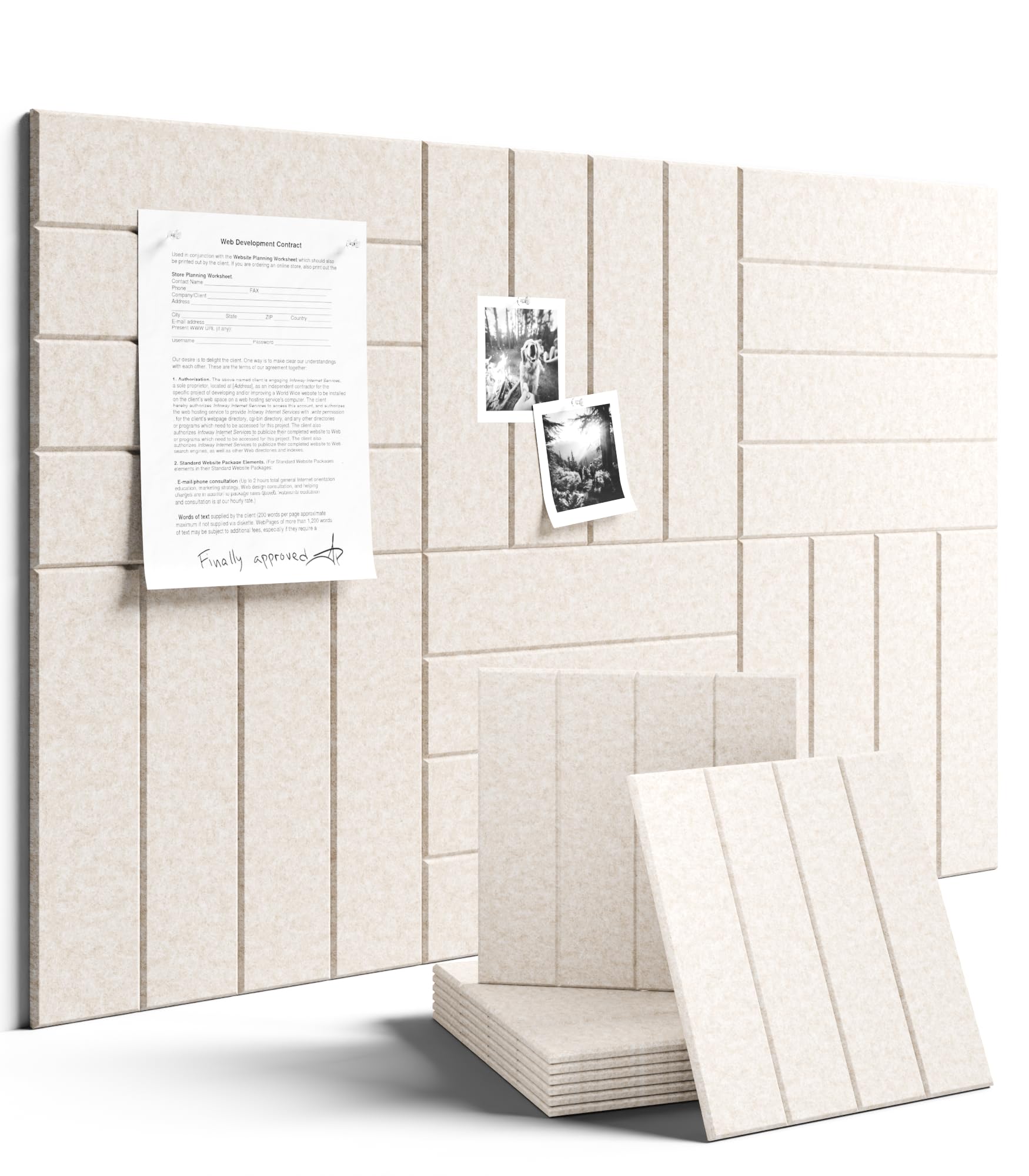 Fluxynara Felt Bulletin Board Tiles Large 36" x 24" Cork Board Alternative-6 Pack with 40 Adhesive Tabs, Thick Slat Wall Panels for Office Decor, Push|Office Supplies