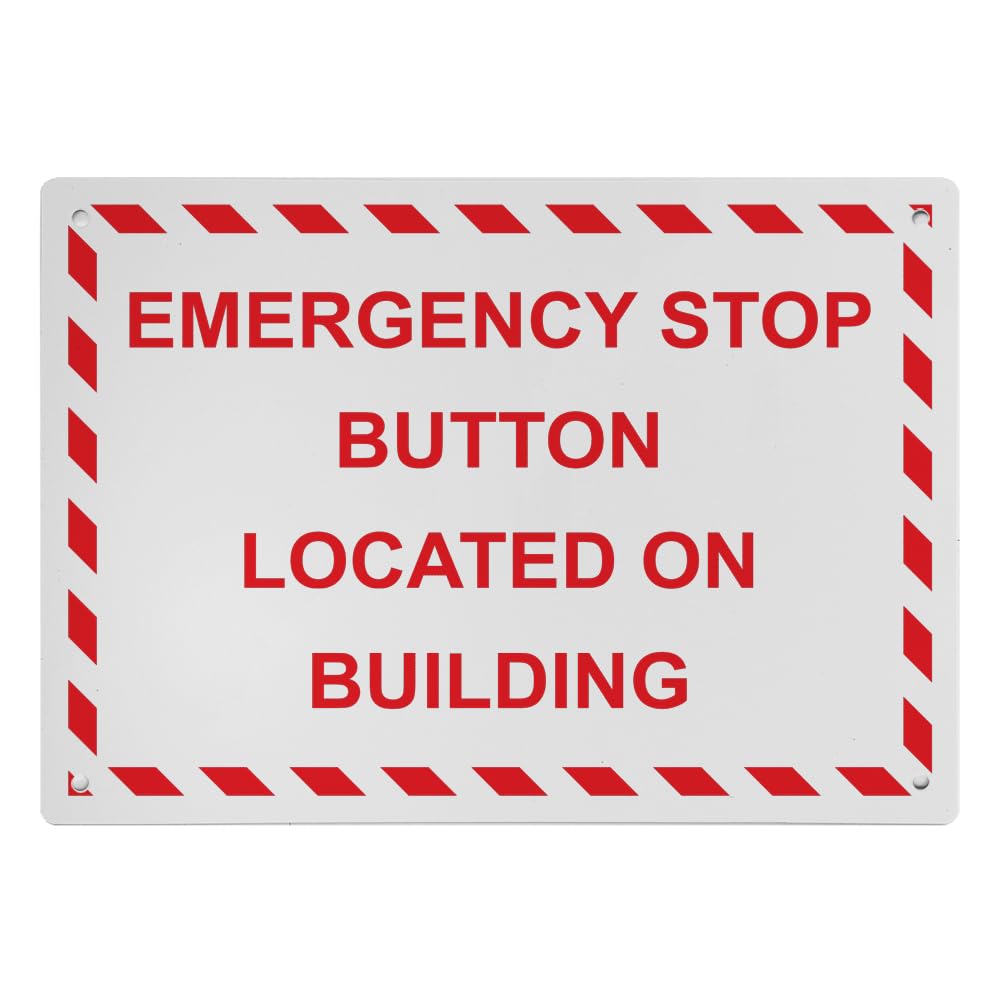 Weatherproof OSHA Emergency Shut Off Sign (Emergency Stop Button Located On Building) Portrait Vertical 8 in" x 12 in" Indoor Outdoor UV Resistant|Office Supplies