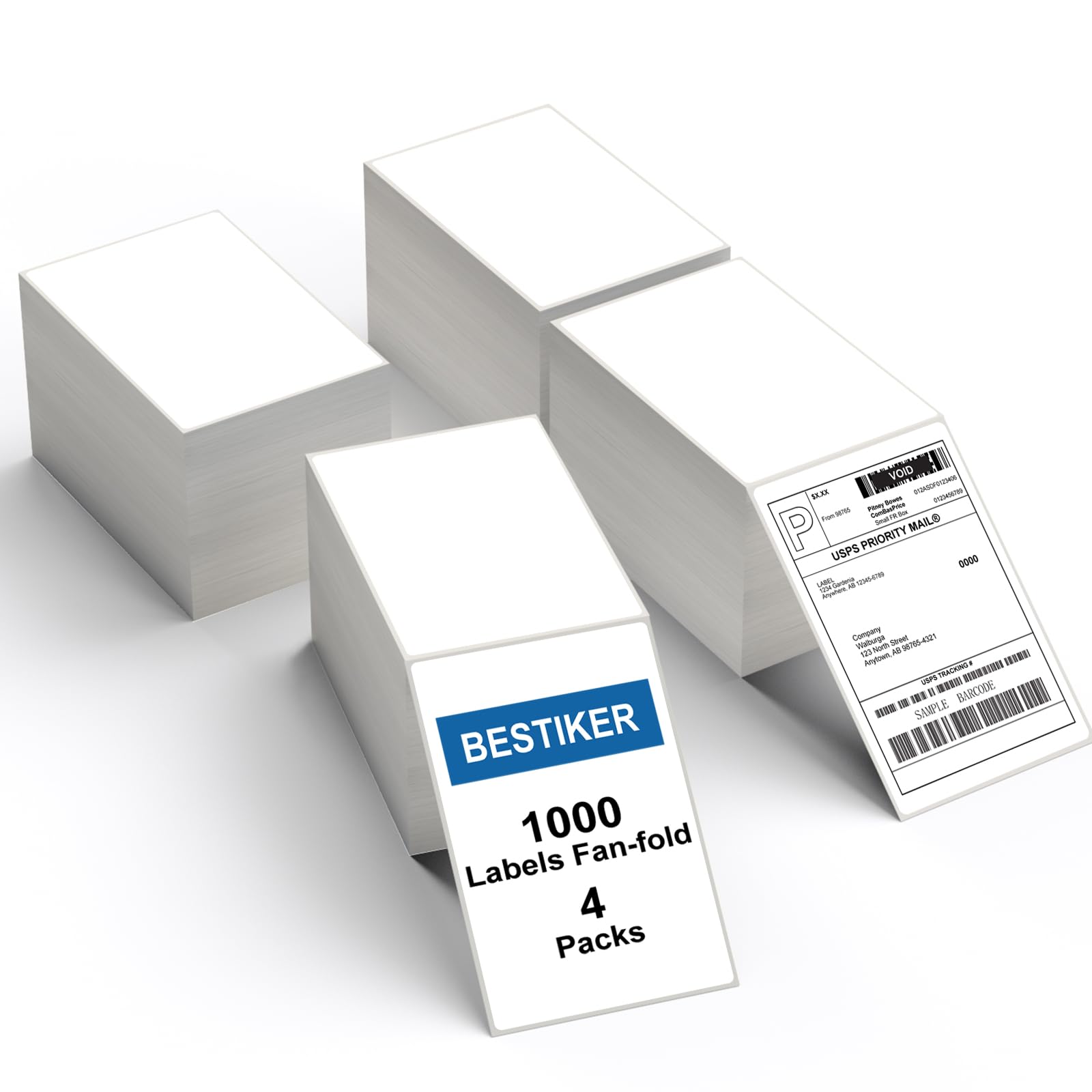 BESTIKER 4”x6” Thermal Labels 4000 Labels, Shipping Label Thermal Paper for Thermal Printers Zebra & Rollo (4 Packs of 1000)|Office Supplies