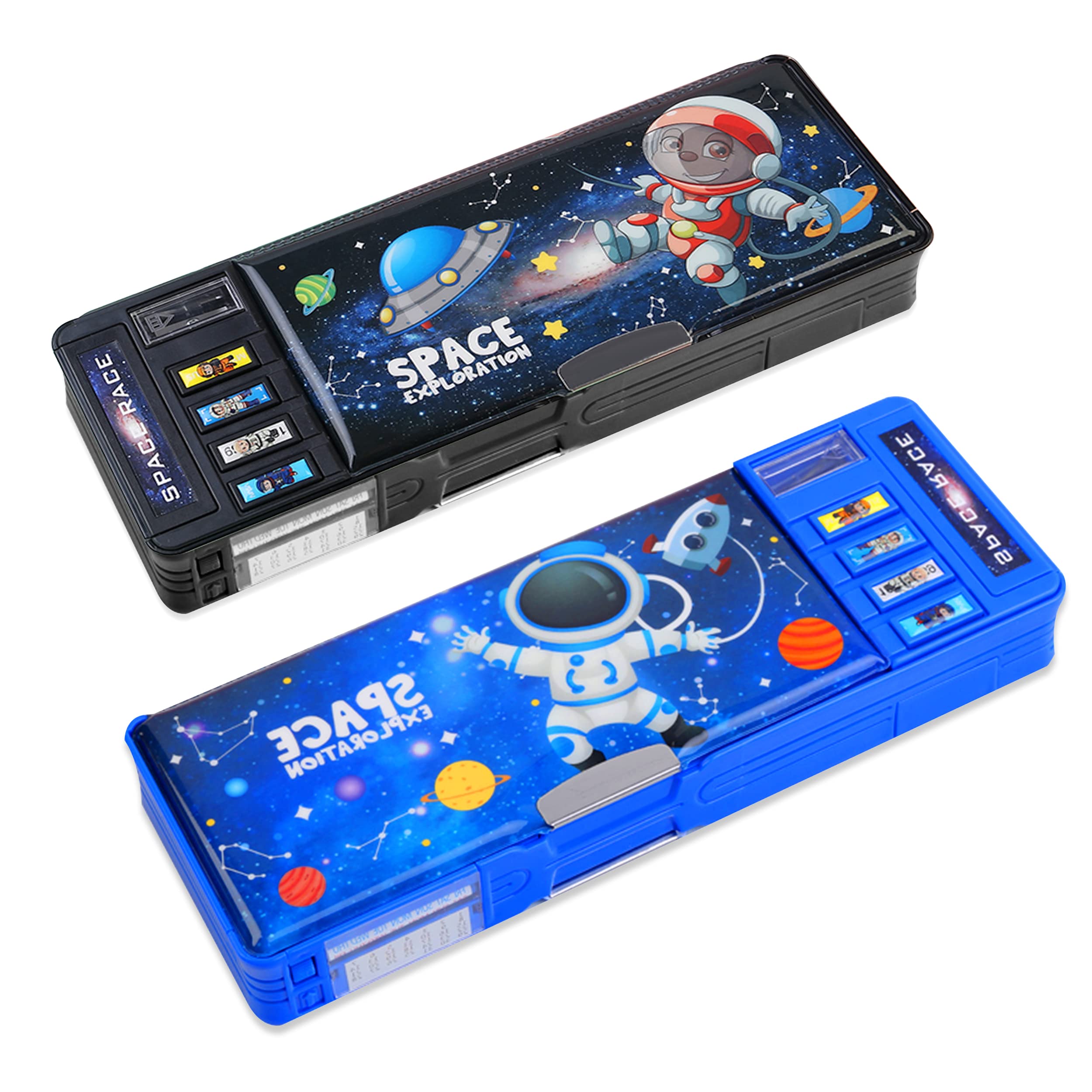 LilyBeauty 【2Pack】 Pop Up Multifunction Pencil Case for Girls and Boys(NO LOCK), Cute Cartoon Pen Box Organizer With Sharpener, Schedule, Whiteboard,|Office Supplies